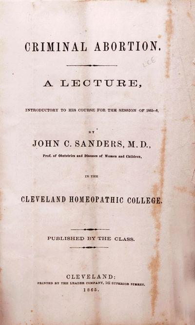 Criminal Abortion. A Lecture, Introductory to his Course for the Session of 1865-6...in the Cleveland Homeopathic College. Published by the Class