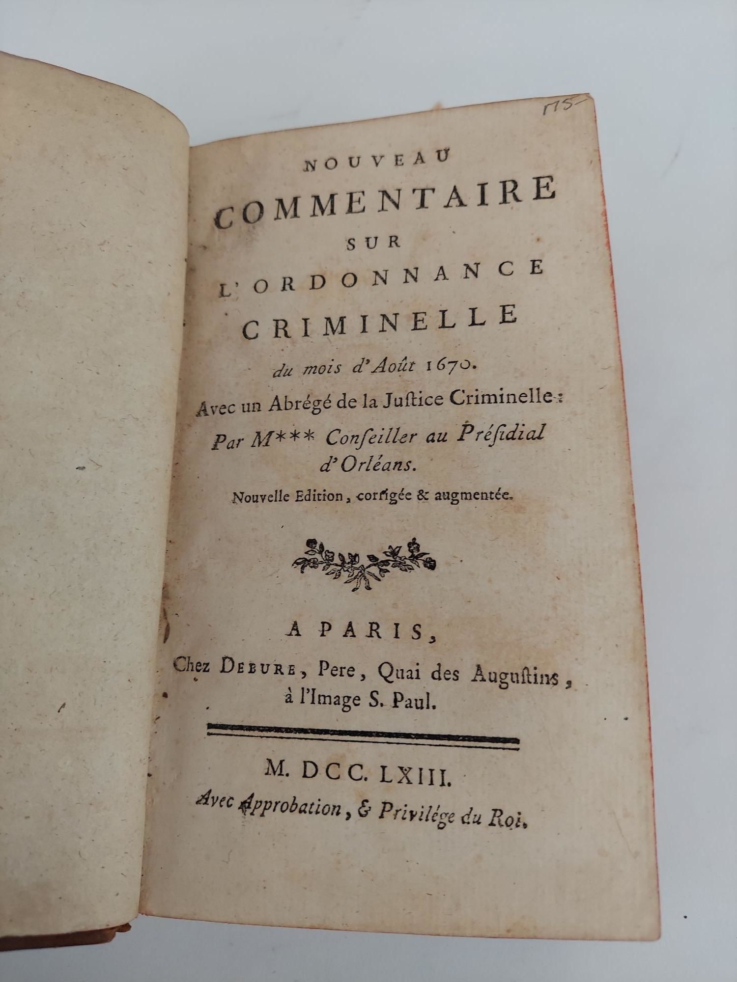 NOUVEAU COMMENTAIRE SUR L'ORDONNANCE CRIMINELLE DU MOIS D AOUT 1670. AVEC UN ABREGE DE LA JUSTICE CRIMINELLE: PAR M CONSEILLER AU PRESIDIAL D'ORLEANS