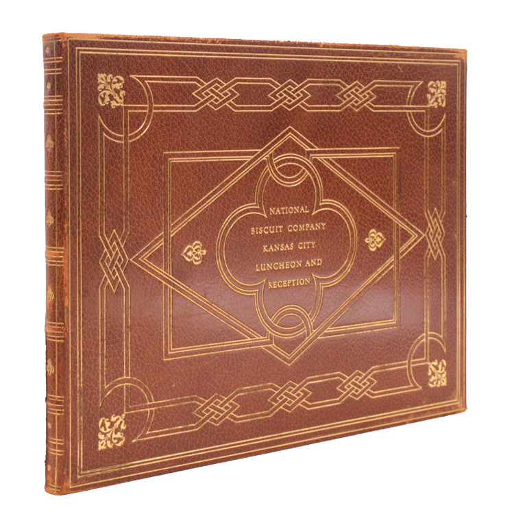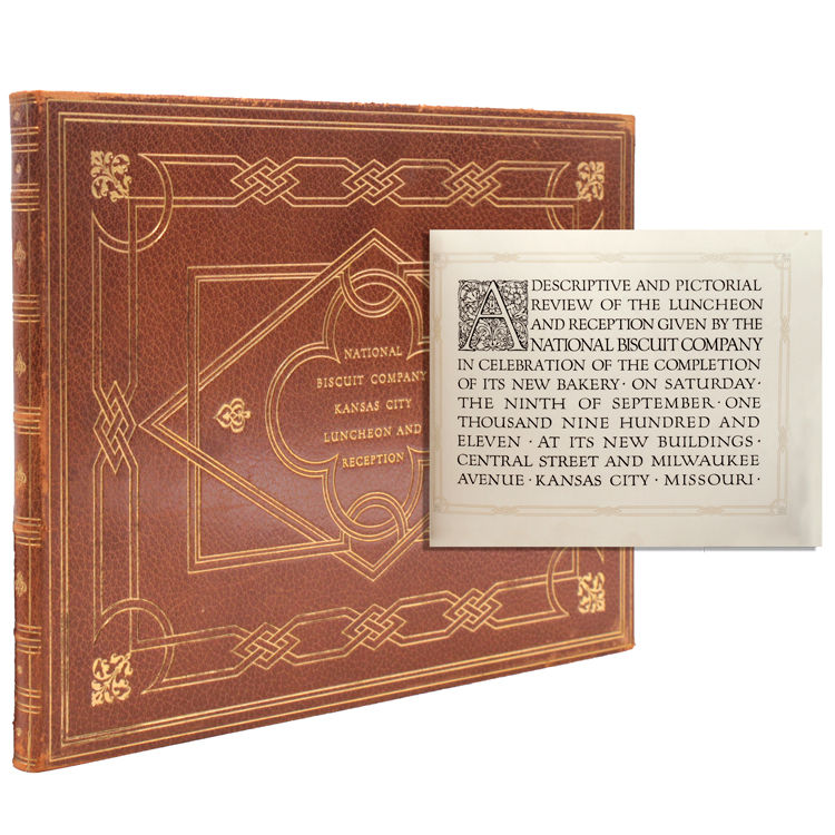 Kansas City, MO: Nabuisco, 1911. Illustrated throughout. [64]pp. Large oblong quarto. Bound in full brown morocco, gilt. brown moire silk endpapers, matching brown cloth slipcase. Illustrated throughout. [64]pp. Large oblong quarto. Inscribed on ffep.