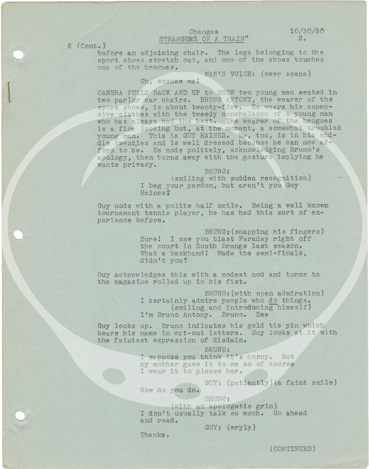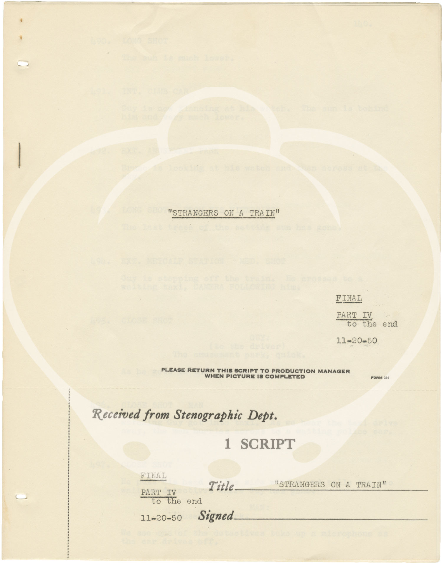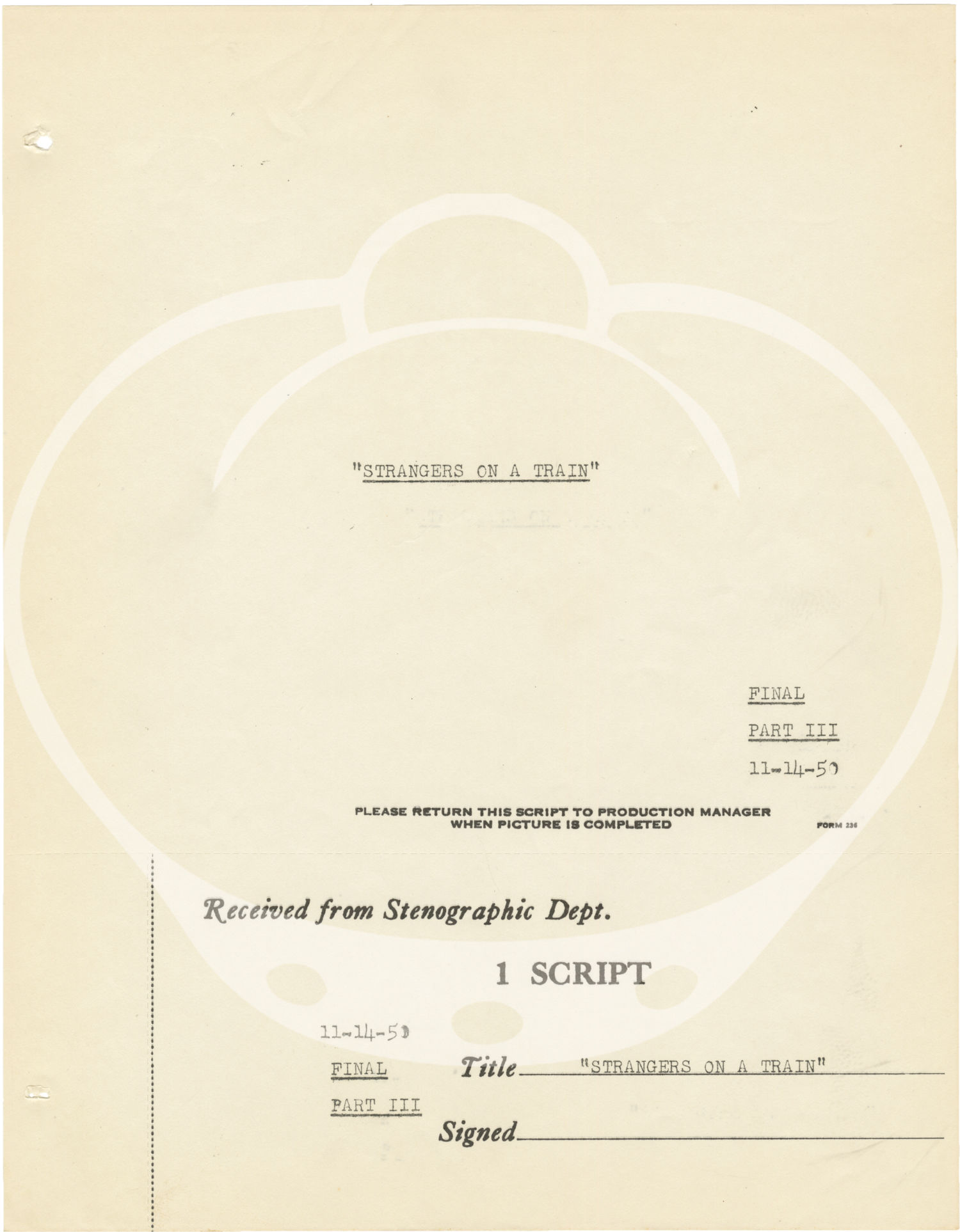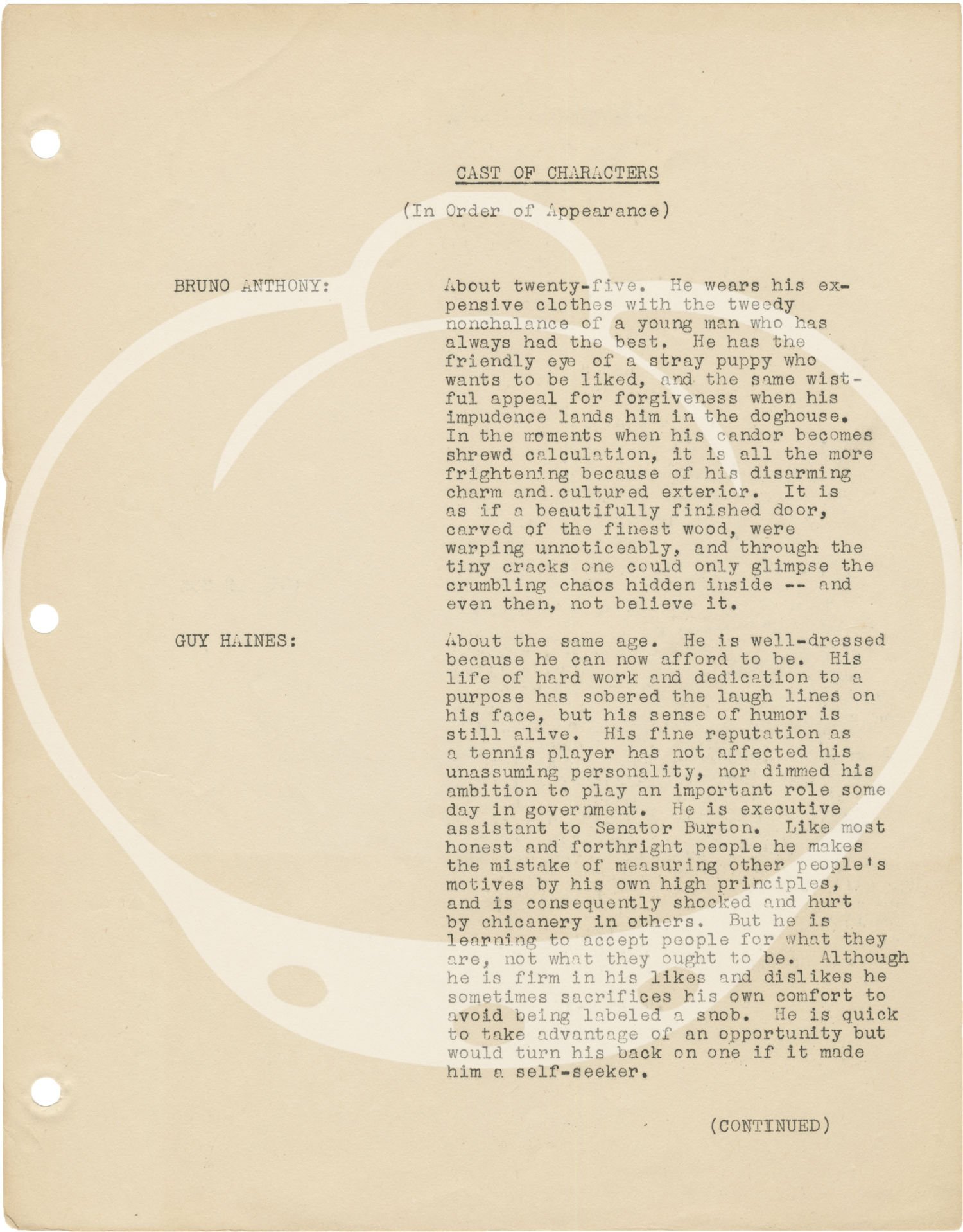 Based on Patricia Highsmith's 1950 novel. A Hitchcock classic, following a psychotic socialite and tennis pro who meet on a train and promptly form a partnership to “exchange murders.” The plan seems infallible until one person shirks his end of the deal.