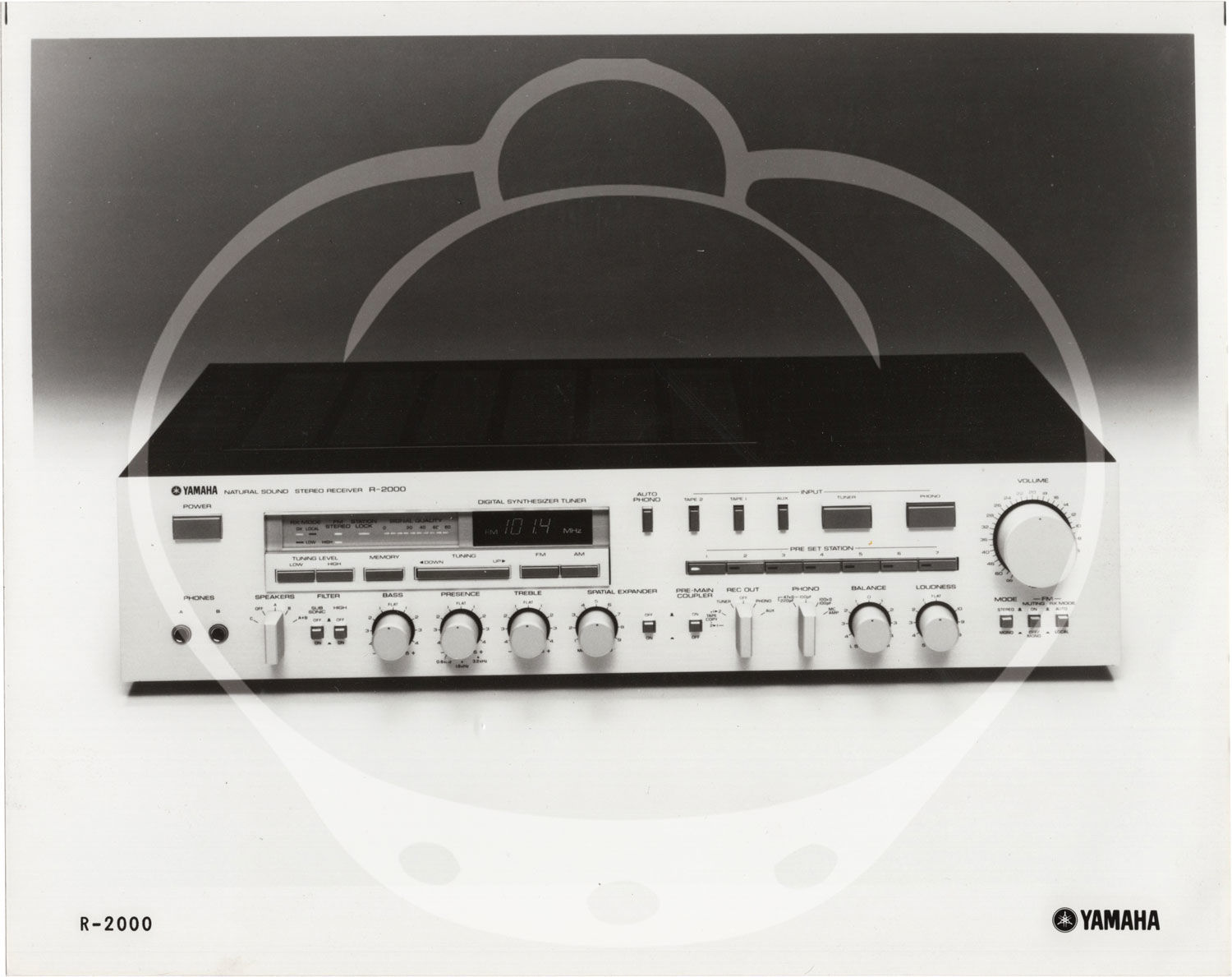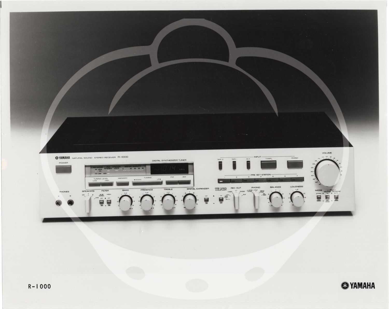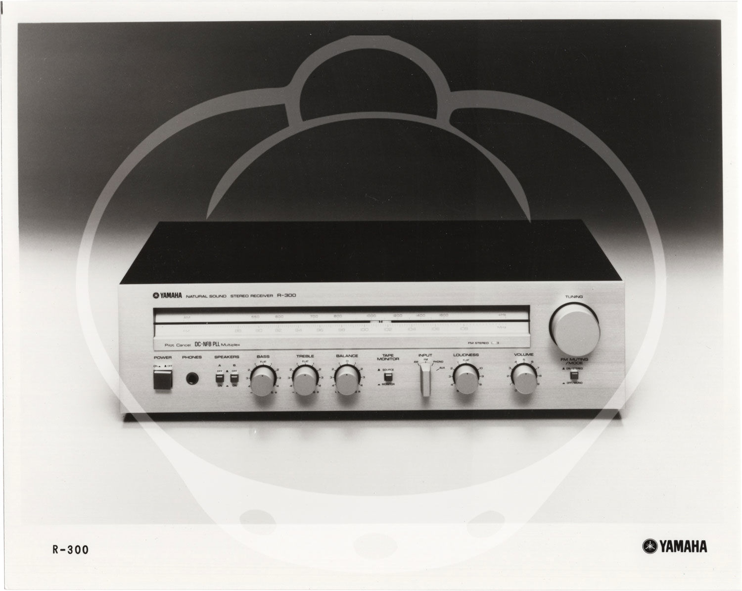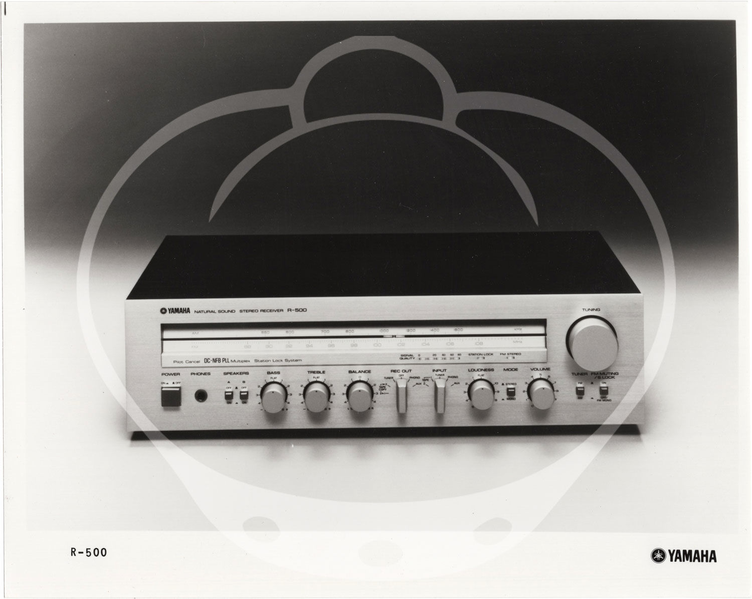 N.p.: Yamaha Corporation, 1982. Seventeen vintage photographs of Yamaha "Natural Sound" home audio equipment, circa 1981-1982. Seventeen promotional product photographs, issued by Yamaha Corporation, showcasing six receivers, five amplifiers, four tuners, a turntable, and a cassette tape deck, all with Yamaha's period design, featuring Yamaha's signature "Natural Sound," with silver and black brushed stainless steel, l.e.d. displays, and then state of the art circuit boards. All of the products found here were manufactured by Yamaha between 1980 and 1983, with 1981 and 1982 being the only years all seventeen products were being manufactured, likely their entire line of home audio equipment offered.