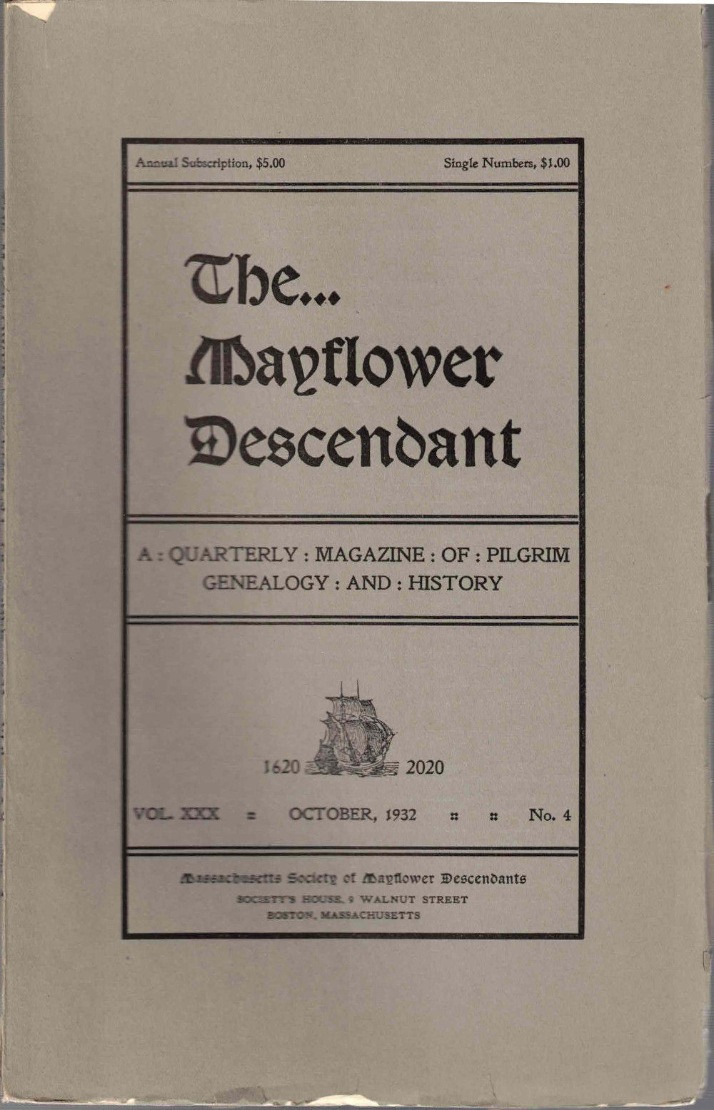 The Mayflower Descendant, A Quarterly Magazine of Pilgrim Genealogy and History, October 1932 Vol. XXX No. 4