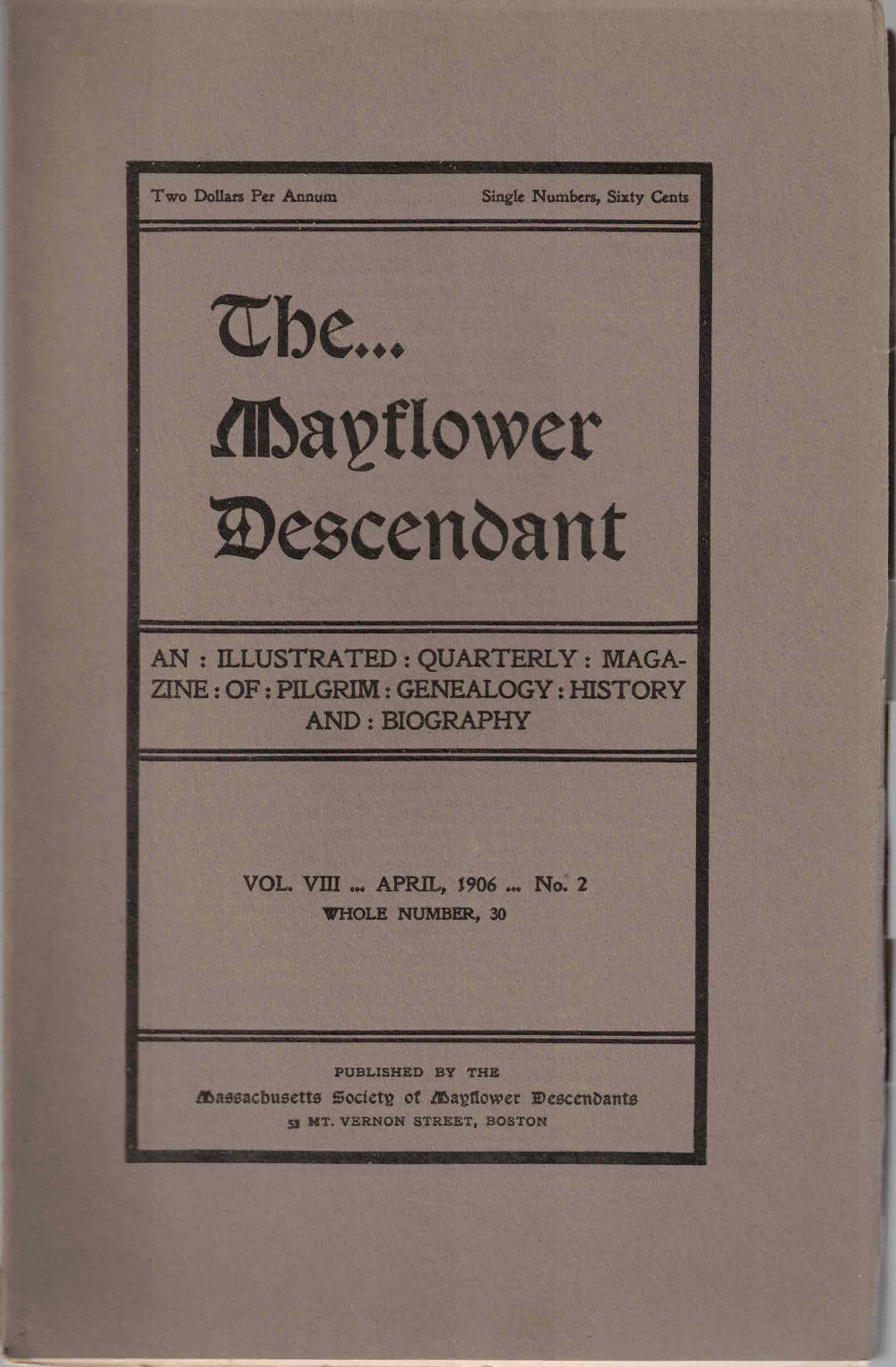 The Mayflower Descendant, An Illustrated Quarterly Magazine of Pilgrim Genealogy, History, and Biography April 1906 Vol. VIII No. 2