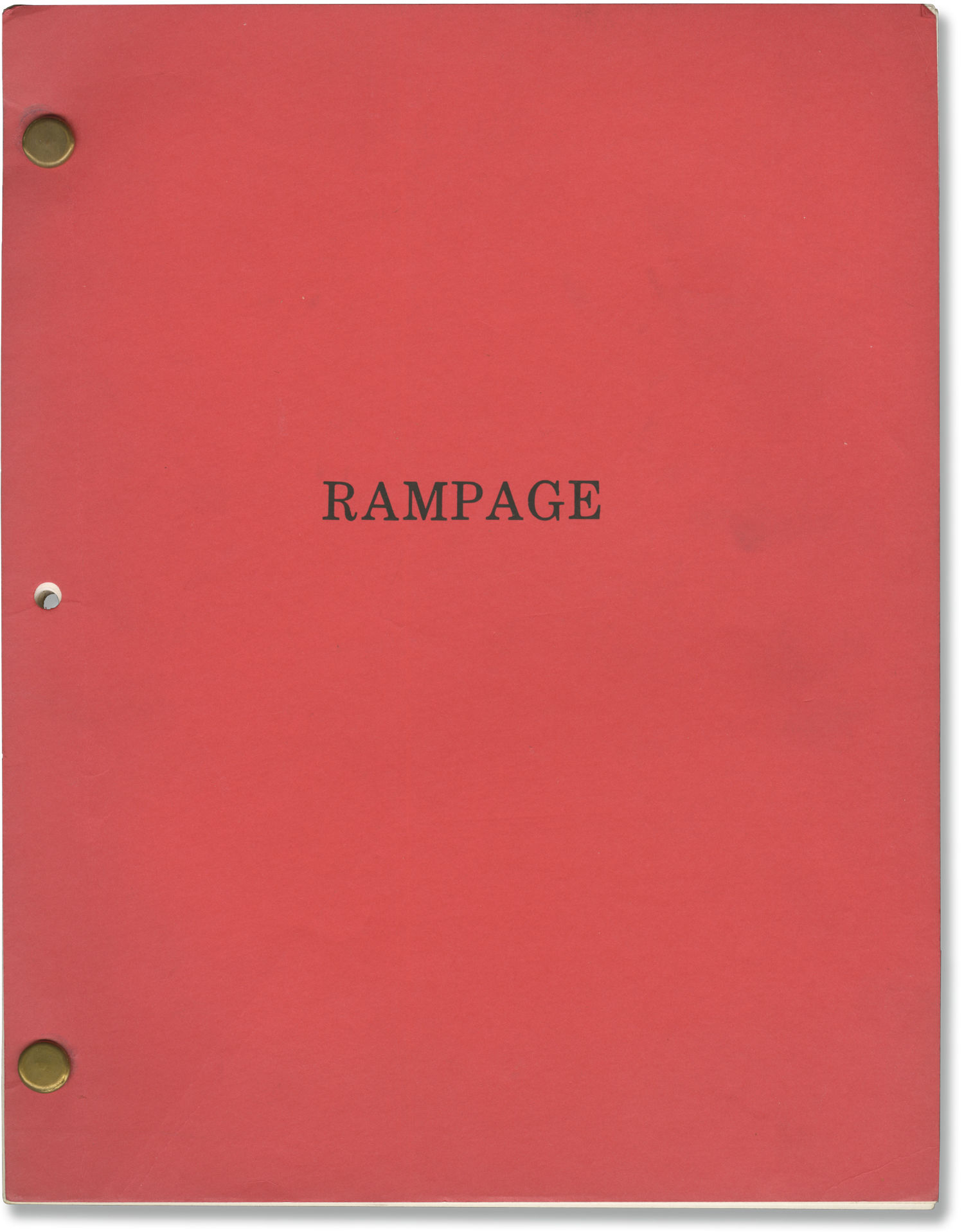 Red titled wrappers. Title page present, dated September 4, 1986, with credits for screenwriter William Friedkin and author William Wood. 136 leaves, with last page of text numbered 123. Xerographic duplication, rectos only. Pages Near Fine, wrapper Near Fine, bound with two gold brads.