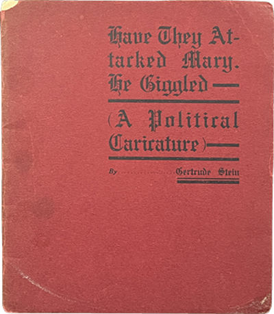 West Chester: Horace F. Temple, 1917. First Edition. Paperback. Good. Limited to 200 copies. Good. Red wraps, toned and with some stains, chipped at the head of the spine, a two inch tear at the foot, rubbed and bumped at the corners. Square, bound with two staples, gift inscription on the front endpaper, clean otherwise. The first separate edition of Stein's work about Henry McBridge that originally appears in Vanity Fair in 1917.
