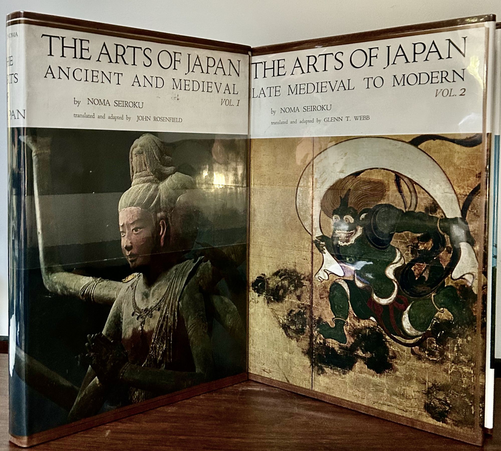 Tokyo: Kodansha, 1972. Hardcover. Orig. decorated beige cloth. Fine in near fine dust wrappers in clear plastic overwrappers. 2 Vols. 236, 229 pages. Folio, 36.5 x 27 cm. Two monumental works with a host of black and white, color and tipped-in plates. Chronology of Japanese Art until 1568 (Vol.I) and Chronology of Japanese Art from the Sixteenth Century. Supplementary Notes and Glossary in each volume. Interior contents bright and fresh. Book label of Ursus Books.