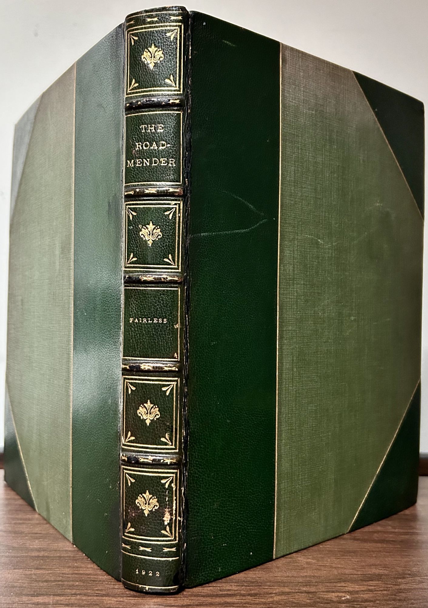 New York: E.P. Dutton, 1922. Hardcover. Orig. three quarter green morocco and green cloth and marbled endpapers. Teg. Near fine. 121 pages. 25.5 x 19.5 cm. Illustrated with 20 photographs, bound from the Edinburgh sheets. The philosophical musings of a rural English laborer: "The swift stride of civilization is leaving behind individual effort, and turning man into the Daemon of a machine." Book plate of John Michael Kauffmann, one of America's pioneering conservationists, also a diplomat, author philanthropist, bibliophile and angler. Raised bands, spine panels richly gilt in floral motifs.