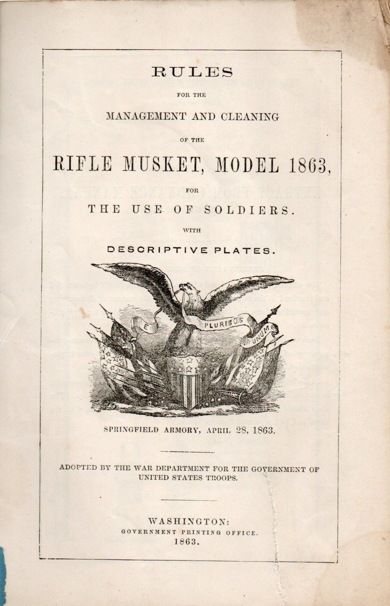 [WEAPONRY] RULES FOR THE MANAGEMENT AND CLEANING OF THE RIFLE MUSKET, MODEL 1863, FOR THE USE OF SOLDIERS. WITH DESCRIPTIVE PLATES