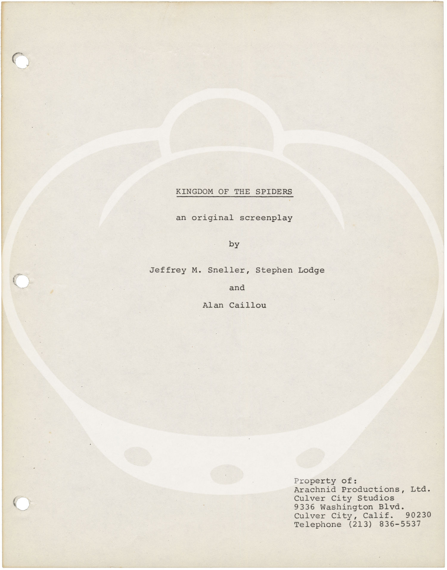 Kingdom of the Spiders (Original screenplay for the 1977 film)