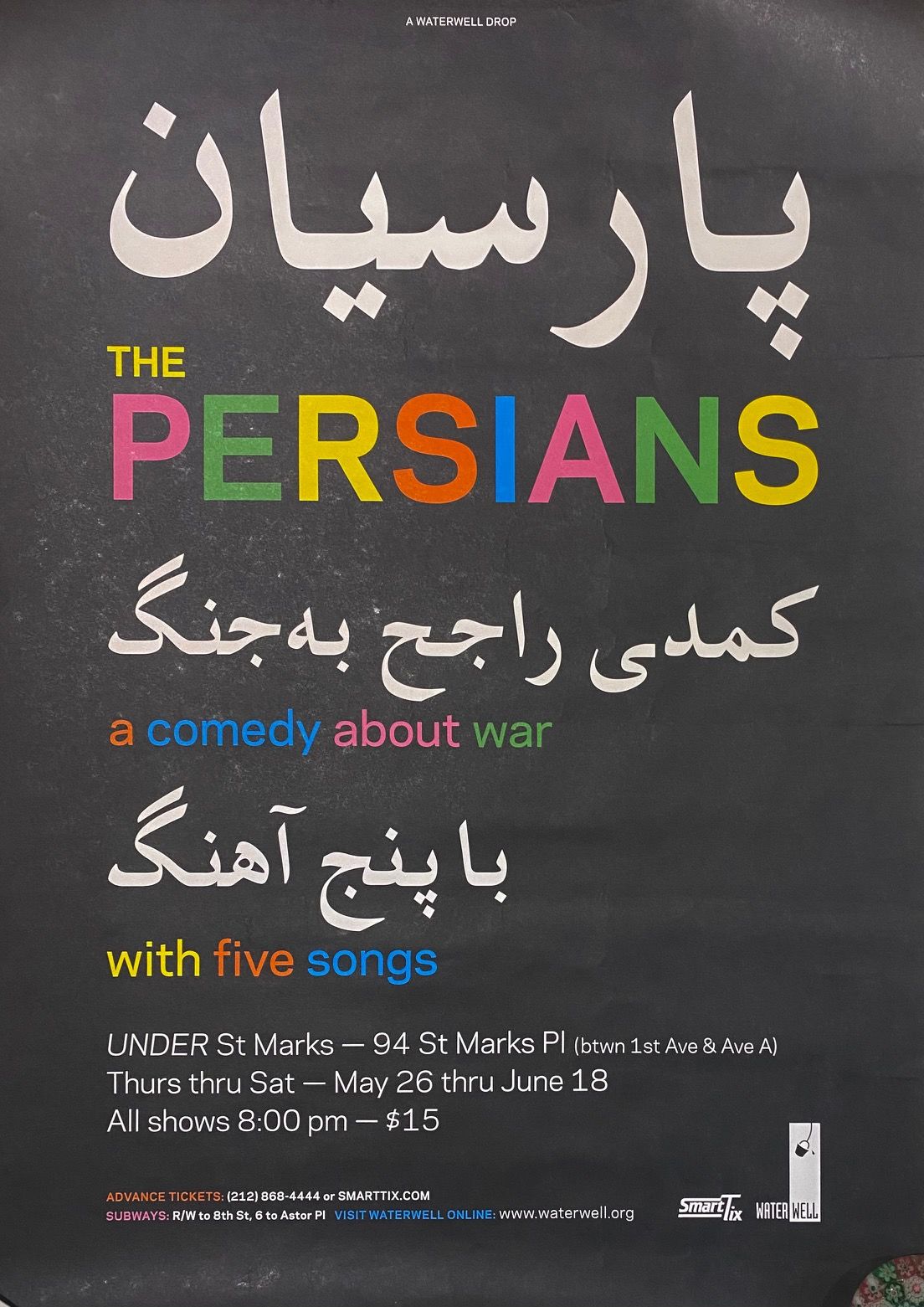 Promotional poster for the 2005 theater production "The Persians", based on the play by Aeschylus. The play was produced by Waterwell Productions, and opened at UNDER St. Marks, where it showed to sold-out audiences before moving to the Perry Street Theater for an extended run. Poster design by Brian McMullen.