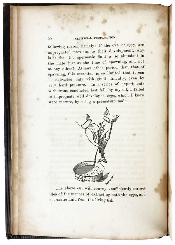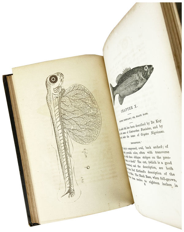 New York: A.O. Moore, Agricultural Book Publisher, 1858. Very Good. New York: A.O. Moore, Agricultural Book Publisher, 1858. Reprint. Octavo; publisher's brown cloth, covers blind-embossed with the image of a fish, gilt-lettered spine; 142,[2](ads)pp.; four leaves of plates and myriad text illus. throughout. Cloth a bit scuffed with chipping and fraying at spine ends and corners rather bumped, foxing throughout textblock, else a Very Good, still quite attractive copy overall. (Initial photo a bit over-exposed to better catch fish-stamping.)
