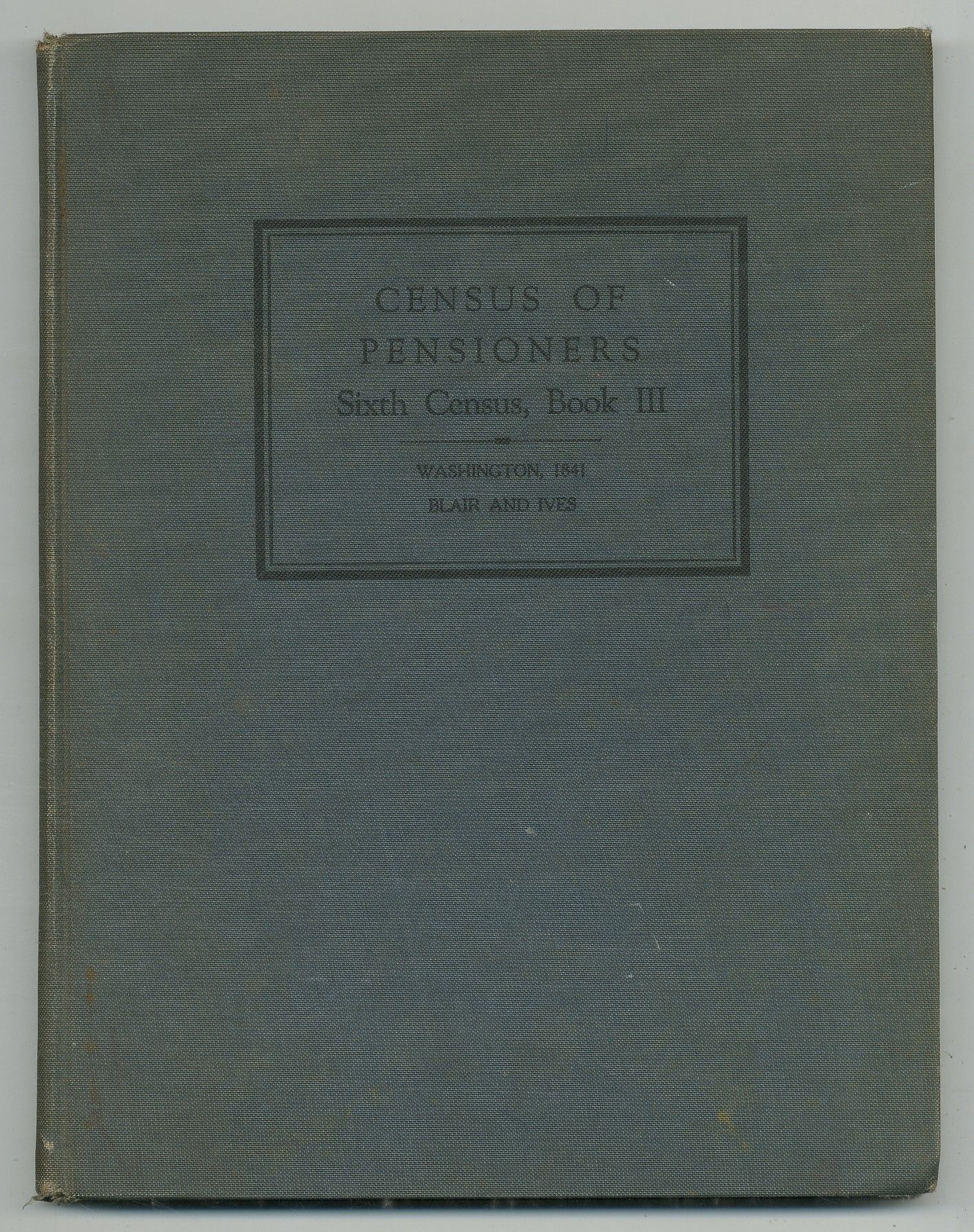 [Facsimile]: A Census of Pensioners for Revolutionary or Military Services; With their Names, Ages, and Places of Residence, as Returned by the Marshals of the Several Judicial Districts, under the Act for Taking the Sixth Census [Cover Title]: Census of Pensioners: Sixth Census, Book III