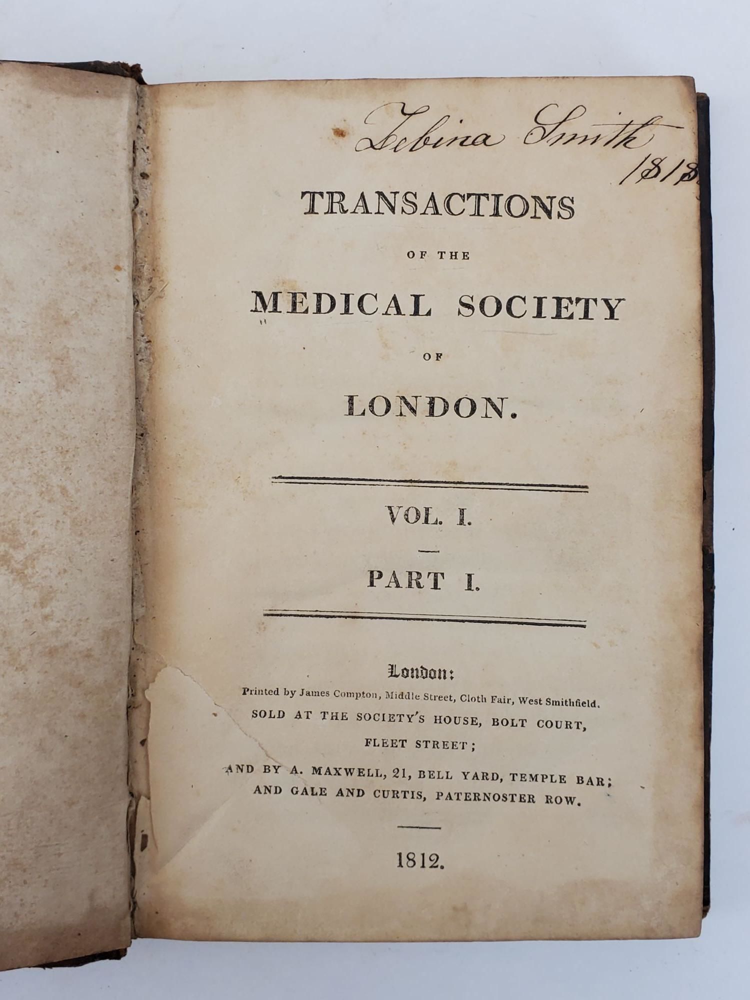 TRANSACTIONS OF THE MEDICAL SOCIETY OF LONDON VOLUME 1 PART 1