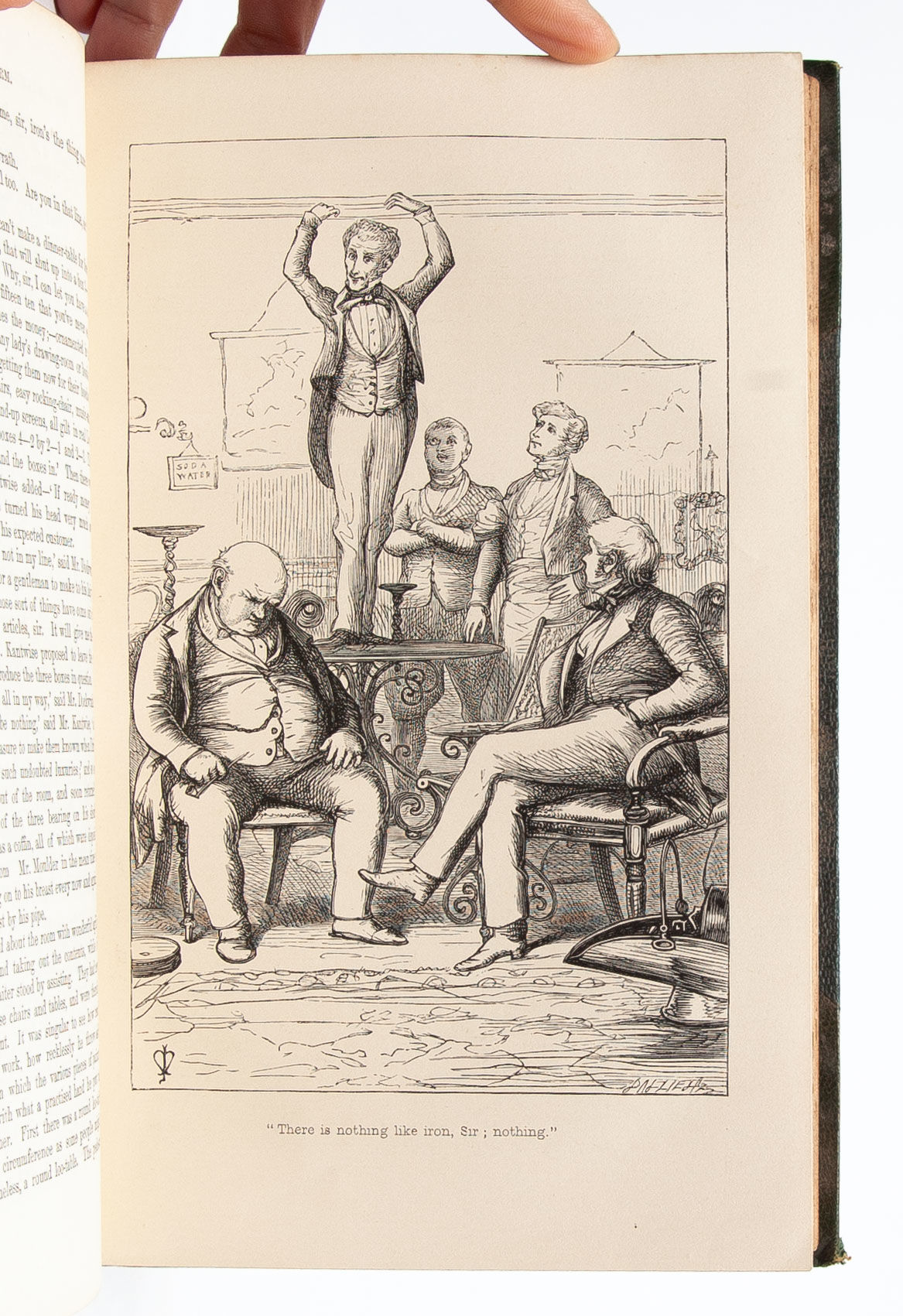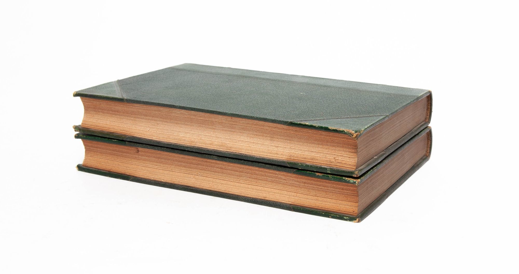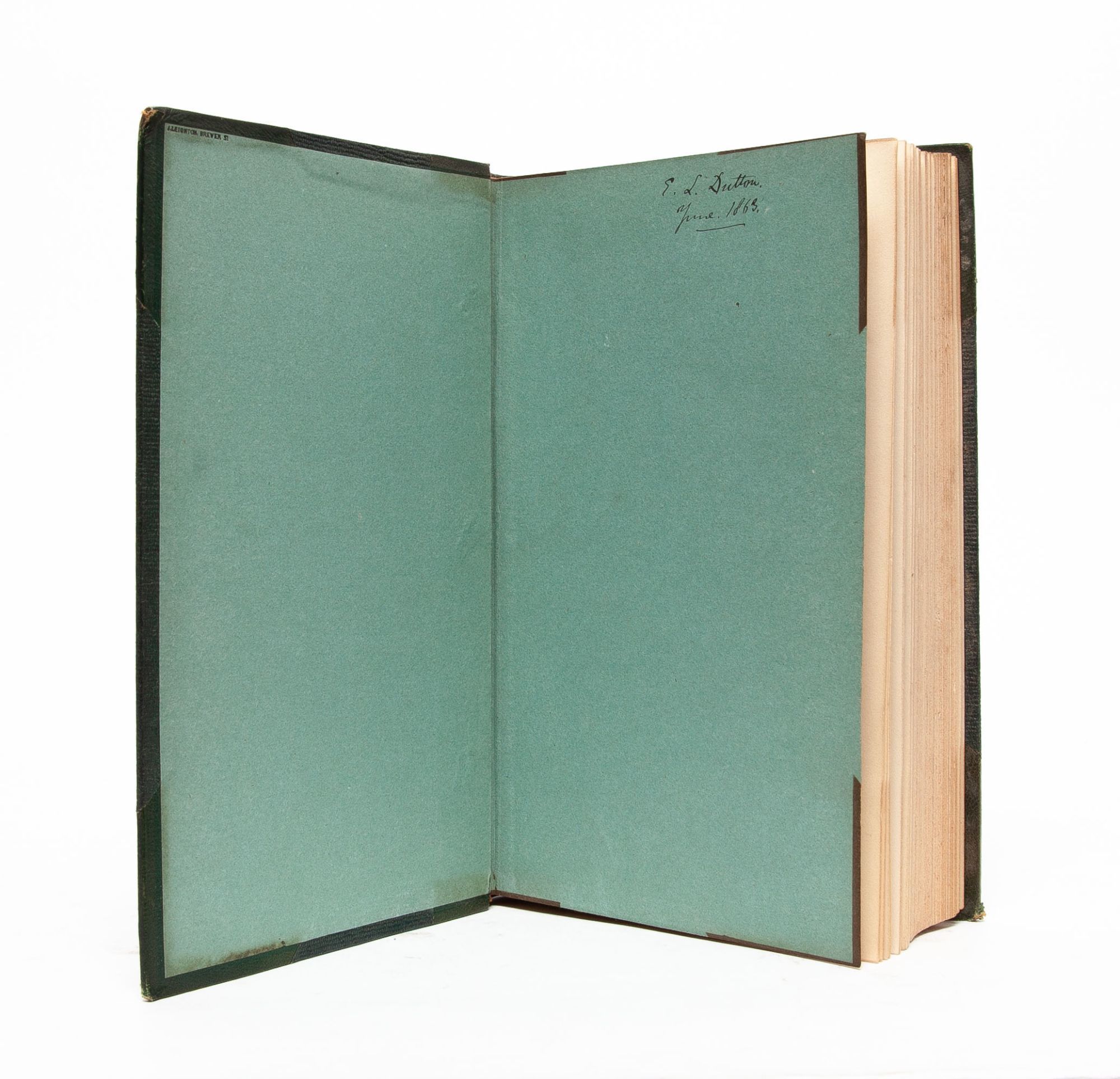 London: Chapman and Hall, 1862. First edition. Near Fine. Bound in green half morocco over pebbled cloth. With half titles, but bound without the ads. Collation: viii, 320; viii, 320. An early issue with stab holes visible throughout both volumes; volume I conforming to all issue points for Sadleir's second issue and volume II a first issue with a third issue title page. An attractive contemporary binding in Near Fine condition, internal contents very clean. A contemporary owner's name E. L. Dutton written on the front end paper of each volume.