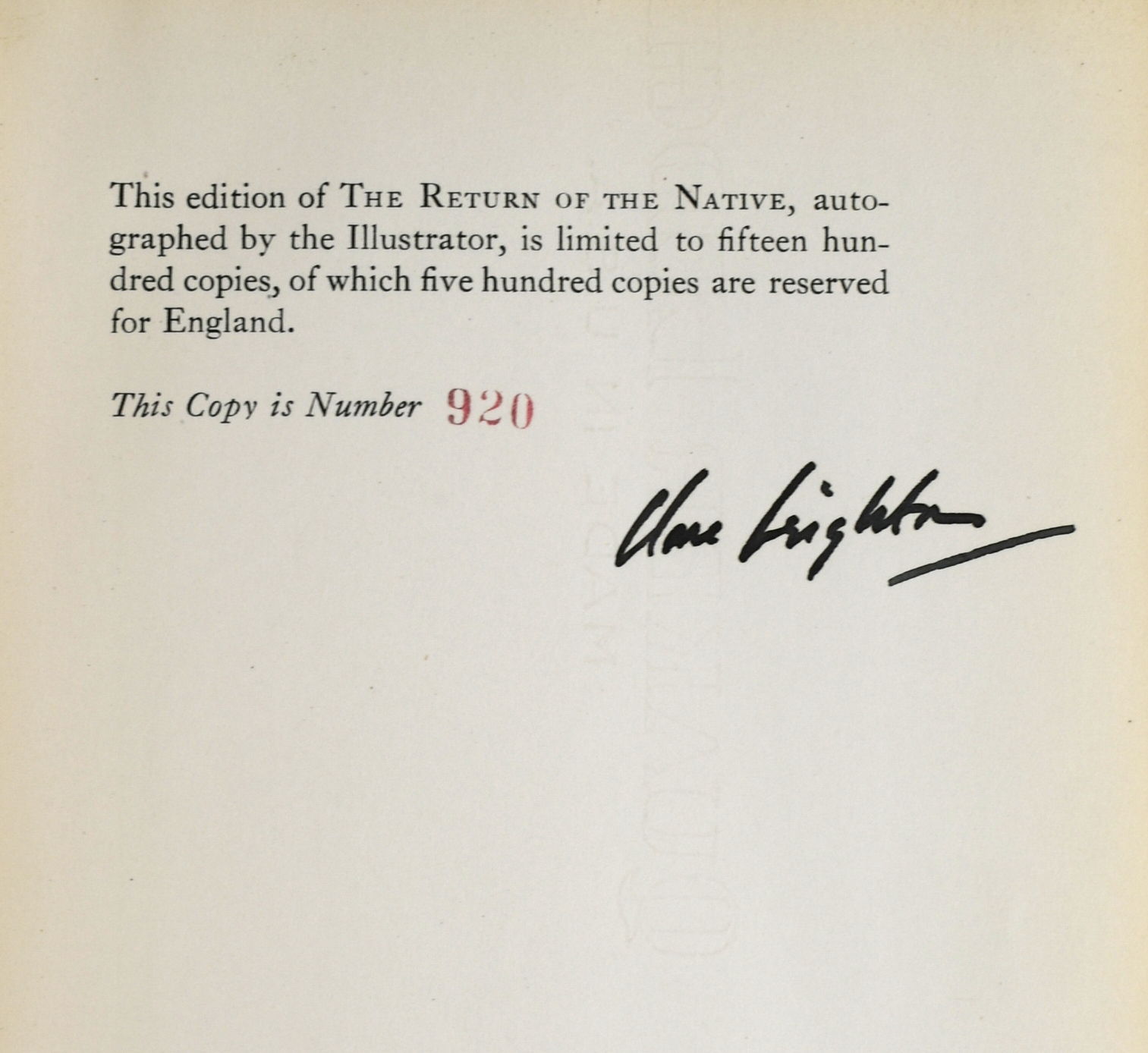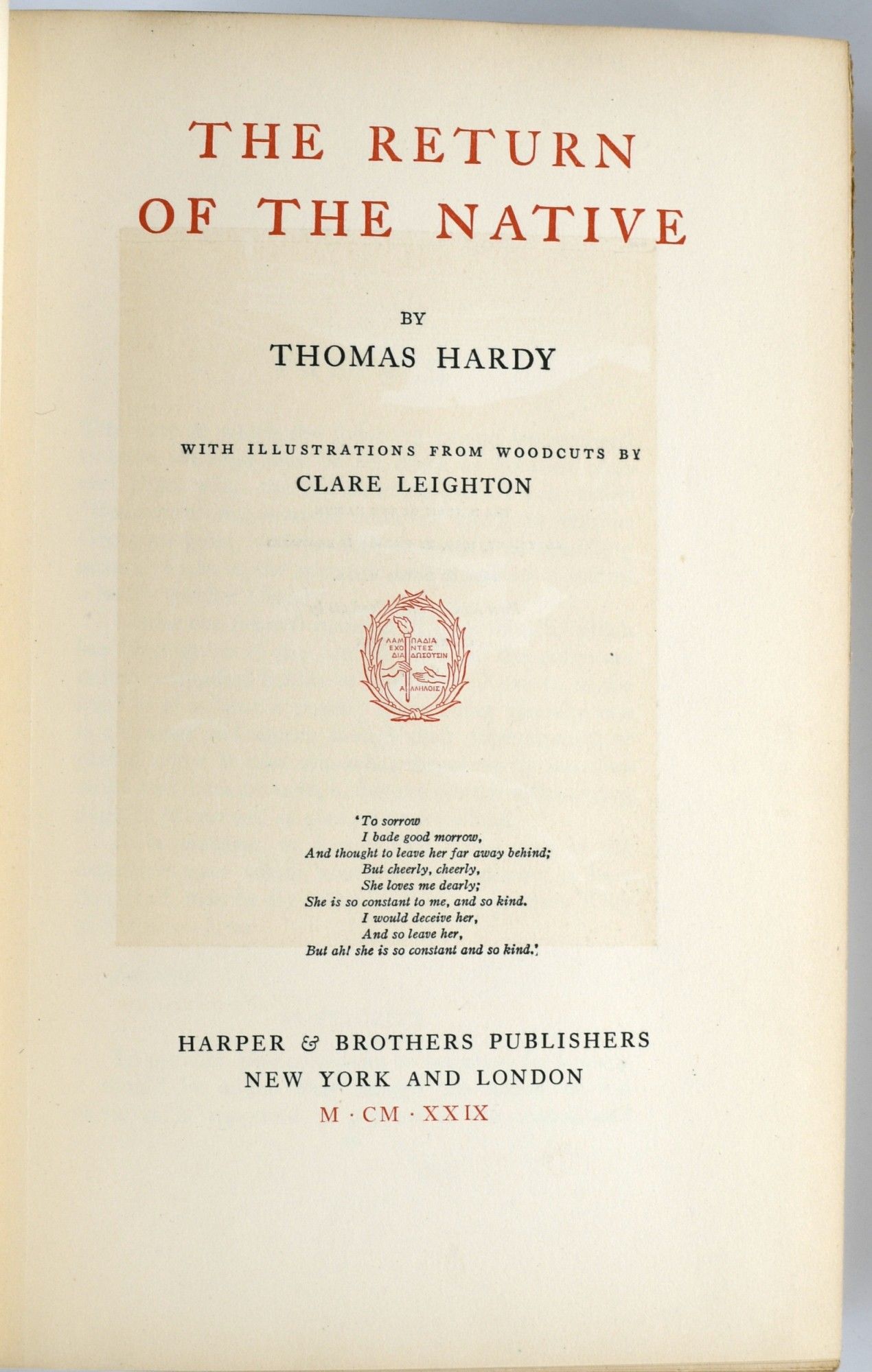New York & London: Harper & Brothers Publishers, 1929. Limited Edition. Hard Cover. Very Good binding/Very Good dust jacket. Signed. 8vo; in the publisher's blue paper-covered boards, backed in linen; with paper spine lable, with dustjacket, and with the original glassine wrapper; x, xi-xiii; [2], 3-484, [485]; with 12 tipped in woodcuts and with numerous textual illustrations; the edition is limited to 1500 copies, of which this is #920, signed by the illustrator, Clare Leighton.~~This copy also inscribed by illustrator Clare Leighton to her then lover, Henry Noel Brailsford. Ms. Leighton provided the woodcut frontispiece and decorations for this book. Noel Brailsford is considered to be the most prolific British left-wing journalist of the first half of the 20th century, and was one of the founders of the Men's League for Women's Suffage [see wiki]. Mr. Brailslford and Clare Leighton lived together for nearly a decade starting in 1928; he was still married to his first wife, and she denied him a divorce. In 1939 Ms. Leighton left England to reside permanently in the United State; she never married.~~The presentation from Clare Leighton: "To Noel who with the third Rasoumowsky and Tadnol [sic] helped be to do this. C. L. New York February 1929". Very Good binding / Very Good dust jacket.