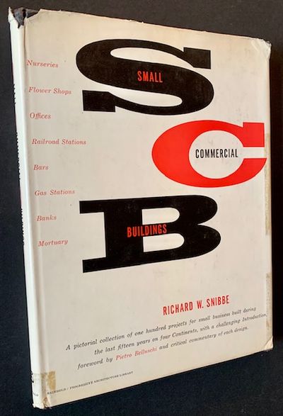 New York: Reinhold Publioshing Corporation, 1956. Cloth. Very Good +/Very Good -. A very presentable copy of the 1956 1st edition. Tight and VG+ (mild bumping at the tips) in a bright, VG- to VG dustjacket, with light chipping at the spine crown and along the tips, and the inconspicuous ghosts of tape once applied to the inside of the dustjacket along its fore-edges as reinforcement. Small former owner stamp at the rear endpaper as well. Tall quarto, hundreds of crisp black-and-white photos complementing Richard Snibbe's text. "A pictorial collection of one hundred projects for small business built during the last fifteen years on four Continents, with a challenging Introduction, foreword by Pietro Belluschi and critical commentary of each design