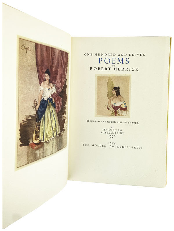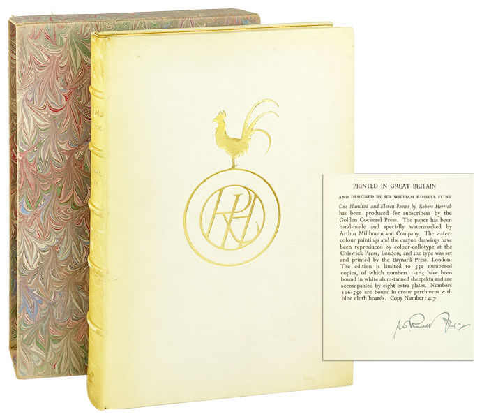Splendid edition of the 17th-century author's risqué poetry with illustrations to match. The illustrations were reproduced by color-collotype at the Chiswick Press while the type was set at the Baynard Press for subscribers of the Golden Cockerel Press.