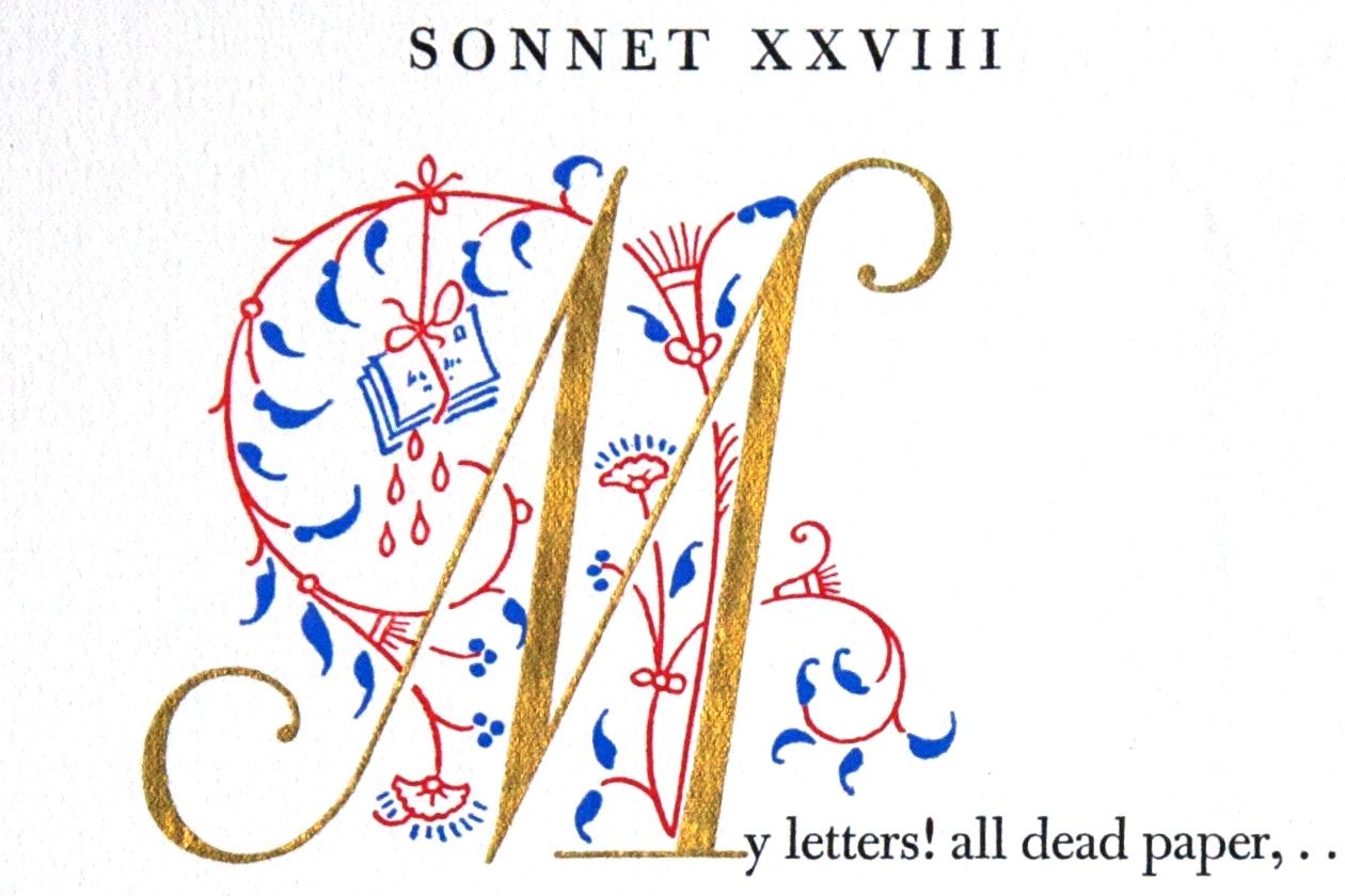 New York: Limited Editions Club, 1948. Hardcover. Some mild fading to the cloth. Near Fine in a Very Good slipcase. Valenti Angelo. Elephant folio (10-1/2" x 15") bound in full blue unfinished linen stamped with gold leaf in a hand-moulded case covered with the same material. Introduction by Louis Untermeyer. The text is reprinted from that of the Fourth Edition of Browning's POEMS, published in 1856; the sonnet now numbered XLII was included in the series for the first time. Embellished with charming decorations in red, blue, and gold by Valenti Angelo, applied to the sheets through silk screens. Copy #1420 of 1500 SIGNED by the artist on the colophon page.