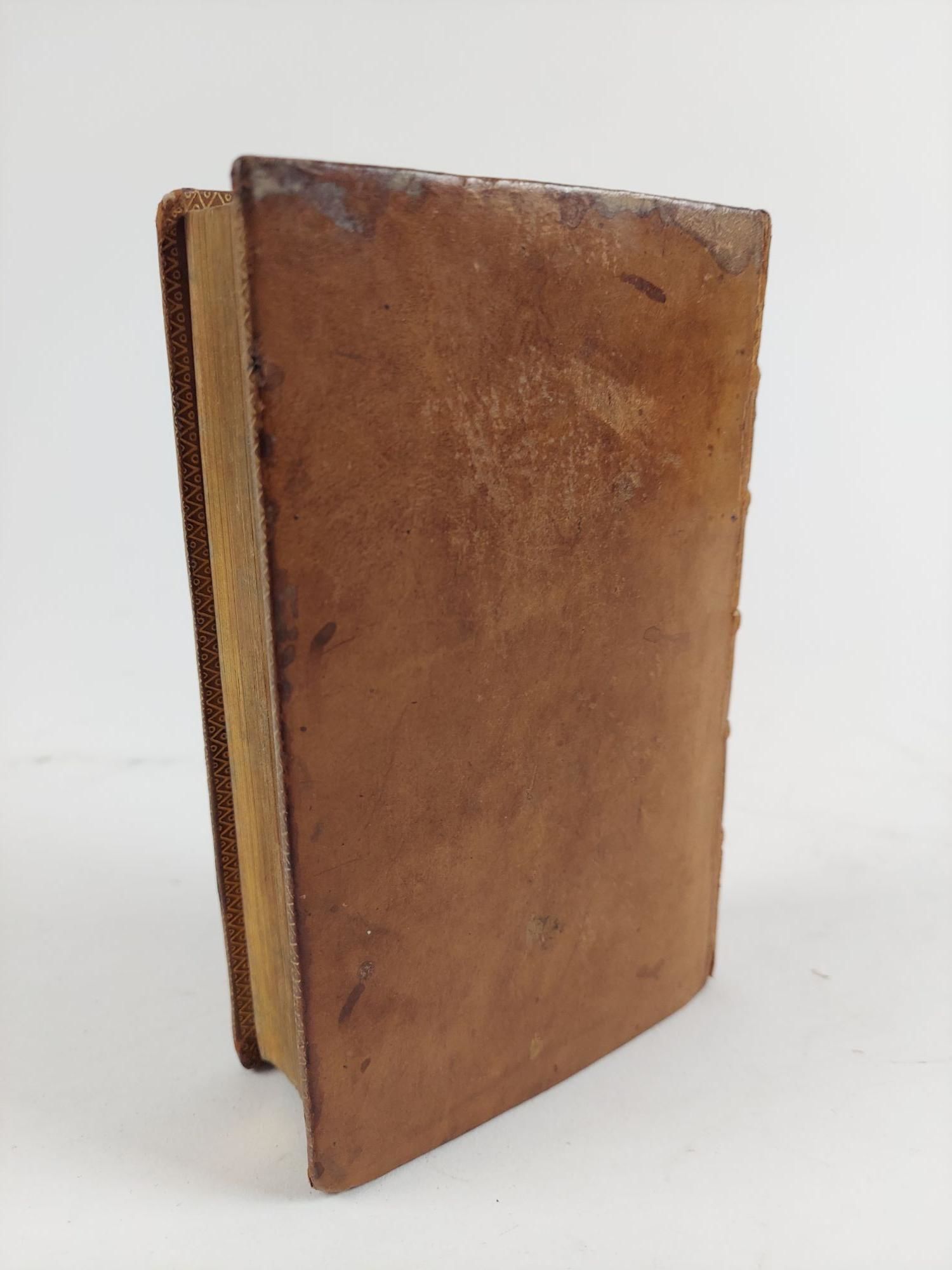 Paris: Chez Guillaume Desprez, 1687. Second Edition. Hardcover. 12mo; 363 pages; G; Rebound in brown leather with gilt lettering on red spine label; Ridged spine; Patterned endpapers; Bumping and rubbing to corners, splitting along front joint, chipping along spine edges, rubbing along edges, stain on front cover; Textblock has age toning to pages, foxing to pages, open tearing along endpapers and pastedowns, possibly due to eating from insects; Text in French; RWO. 1360165. Special Collections.
