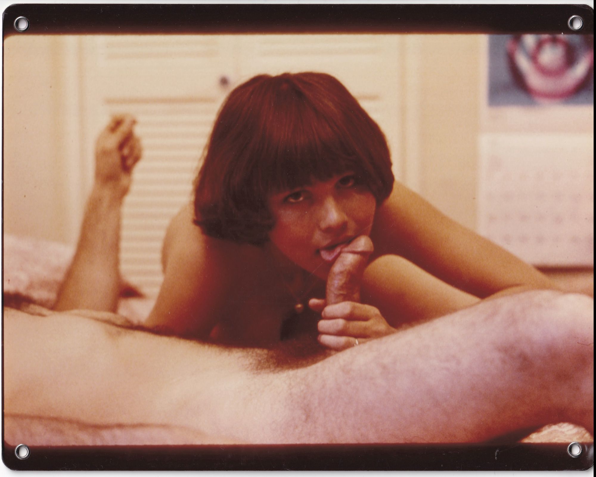 10 x 8 inches. Near Fine, unusually mounted on thick stock, with keybook style holes at the corners for use in adult film theatres.