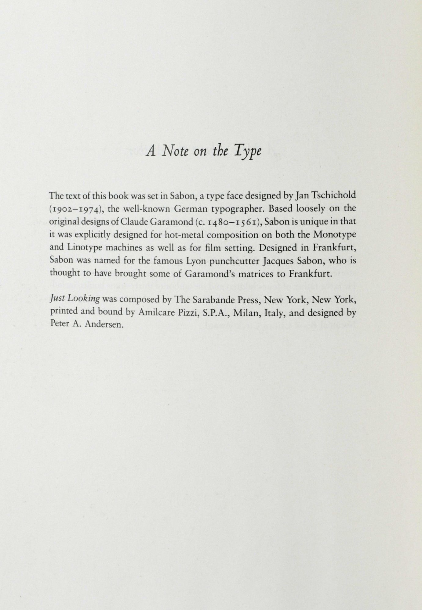 [SIGNED] [LIMITED] JUST LOOKING. ESSAYS ON ART