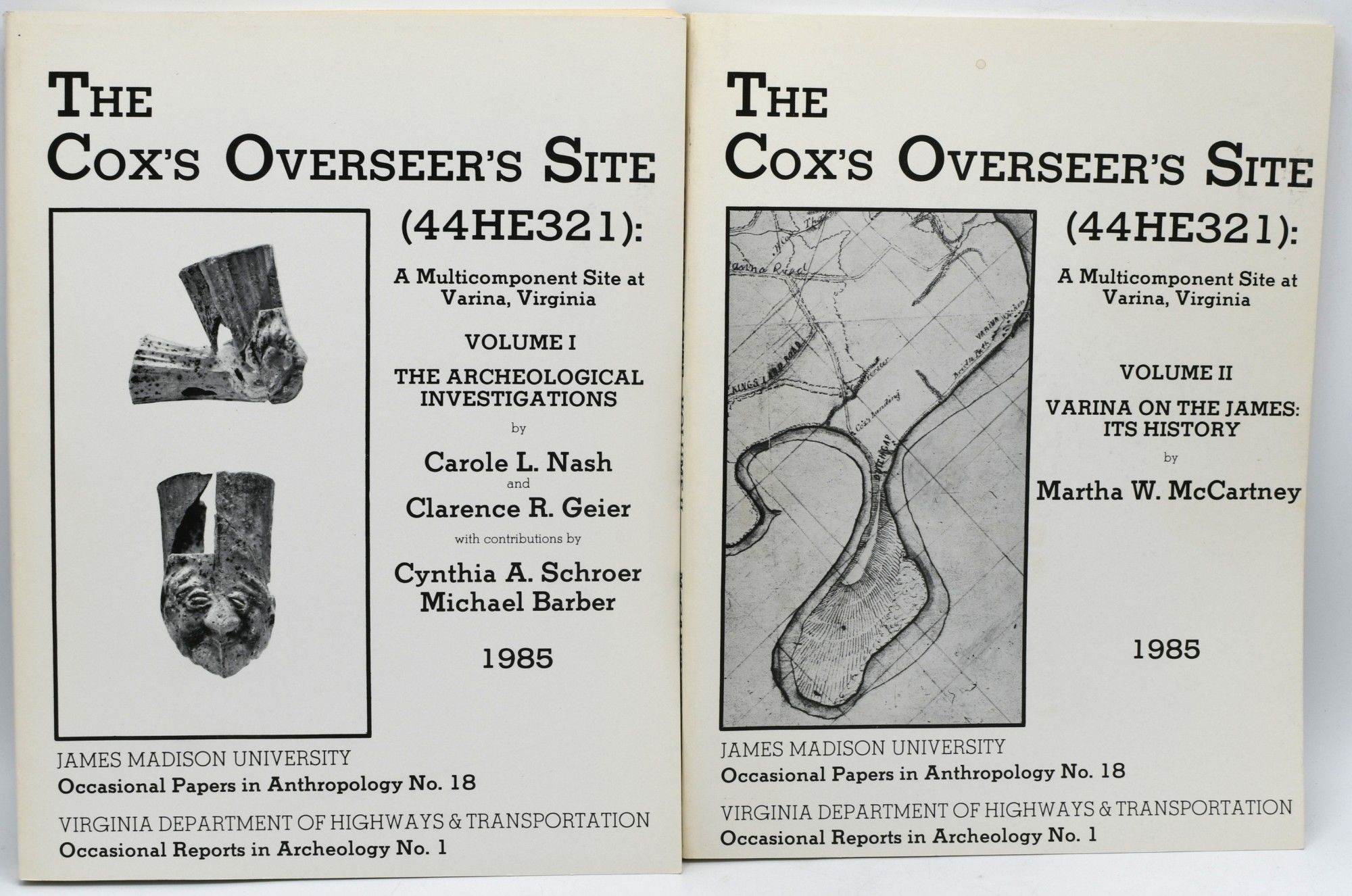 [ARCHAEOLOGY] THE COX'S OVERSEER'S SITE (44HE321); A MULTICOMPONENT SITE AT VARINA, VIRGINIA. 2 VOLUMES. I: THE ARCHAEOLOGICAL INVESTIGATIONS; II: VARINA ON THE JAMES: IT'S HISTORY