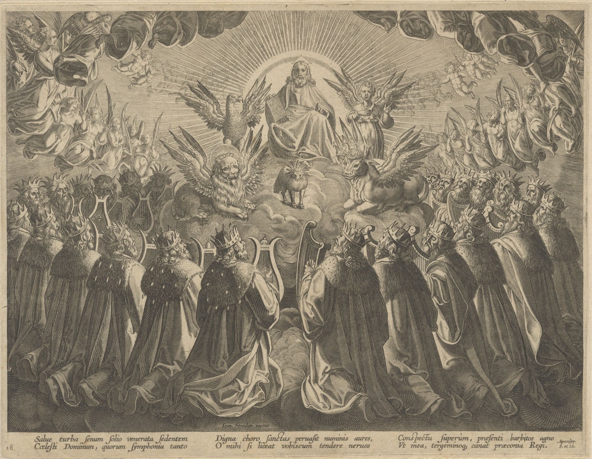 Antwerp: Philip Galle, 1590. The Glory of the Lamb. Revelations v, 8, and xv, 7-8. Plate 18.
