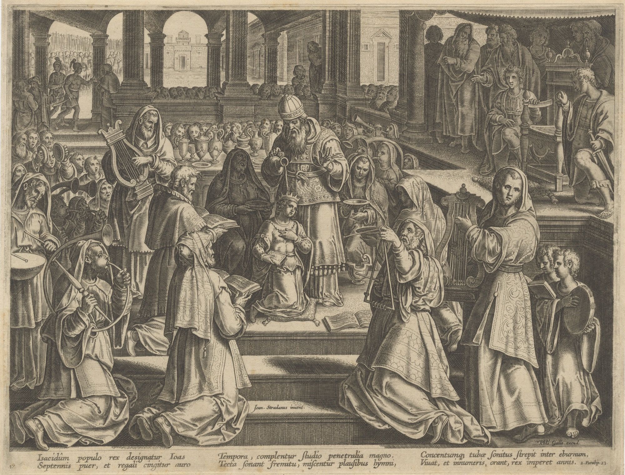 Antwerp: Philip Galle, 1590. Coronation of King Joas. 2 Chronicles xxiii, 11. Plate 12.