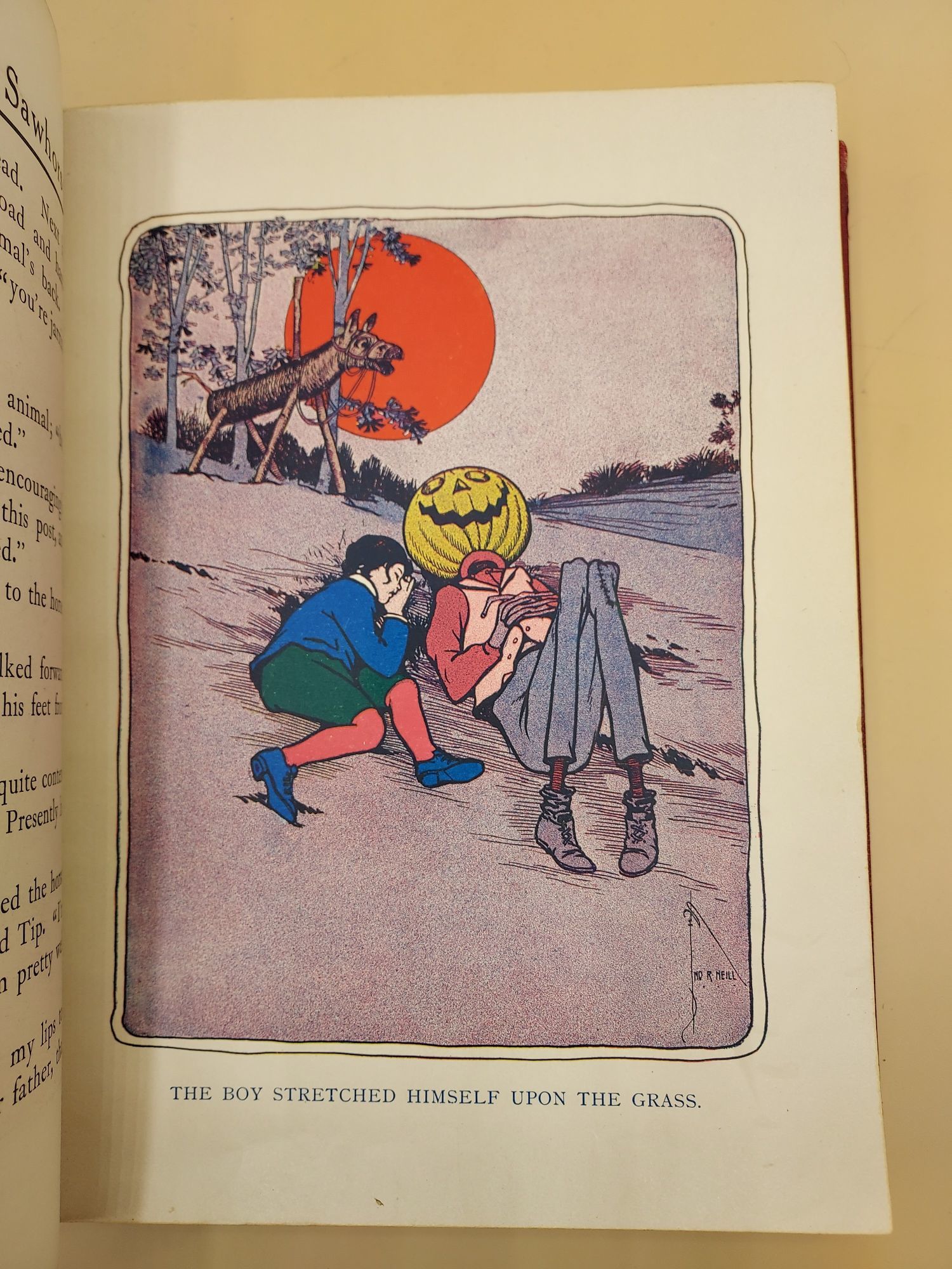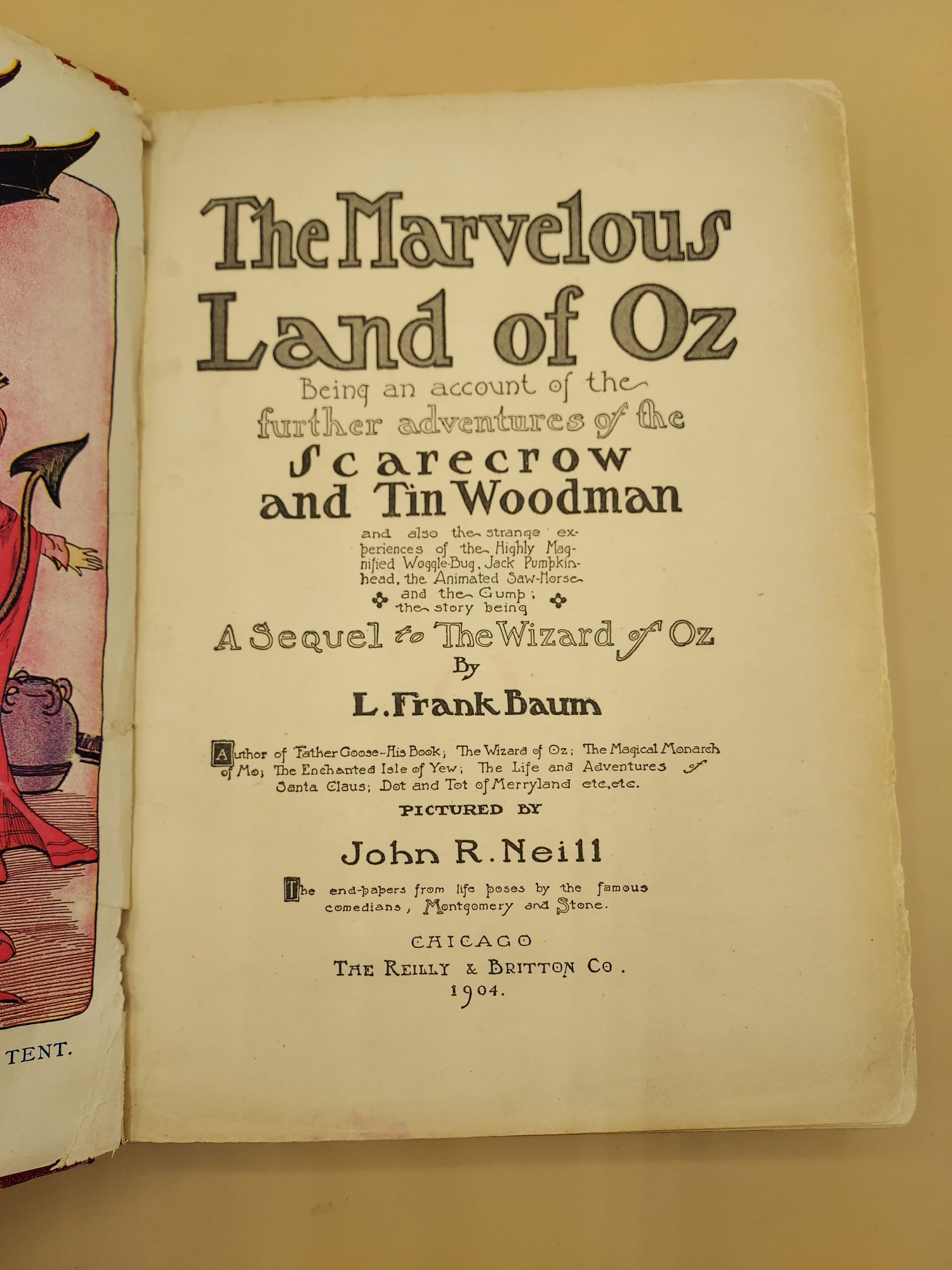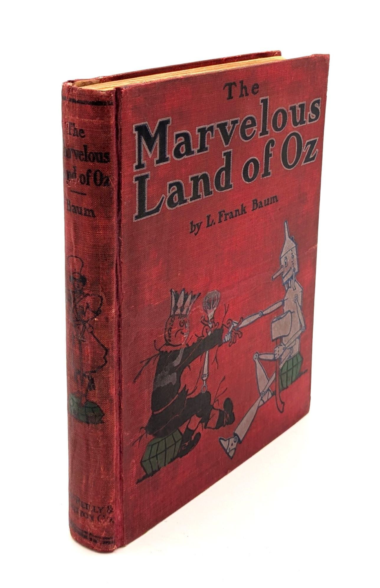 Chicago: The Reilly & Lee Co, 1904. Second Printing, Binding B.. Hardcover. Good. John R. Neill. 286pp. Octavo [23.5 cm] Red cloth over boards with lettering and pictorial stamping in black and silver. Front cover lettering outlined in silver. Rebacked, with the majority of the original cloth backstrip overlaid. No free endpapers. "Published, July, 1904," on copyright page. Occasional short marginal tears to the plates (a couple neatly dabbed with glue). *** Missing the plate at p. 260. Plate which should be inserted at p.182 is inserted at p.184. With fifteen full-color plates by John R. Neill. This is the second book in the Oz series, and the first to feature illustrations by John R. Neill. Beinvenue, p. 23. Hanff, p. 47.
