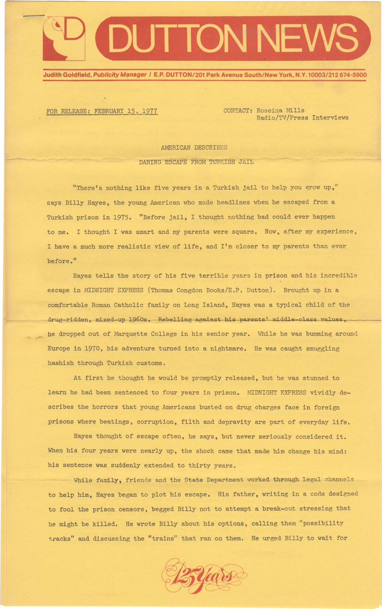 New York: E.P. Dutton, 1977. First Edition. First Edition. REVIEW COPY, with publisher's review materials laid in.