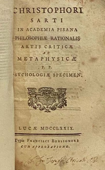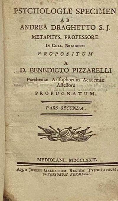 Psychologiae Specimen ab Andrea Draghetto S.J. Metaphys. Professor in Coll. Braidensi, Propositum a D. Benedicto Pizzarelli, Partheniae Arisophorum Academiae Assessore Propugnatum. Pars Secunda. [with] Christophori Santi in Academia Pisana Philosophiae Rationalis, Artis Criticae, ac Metaphysicae