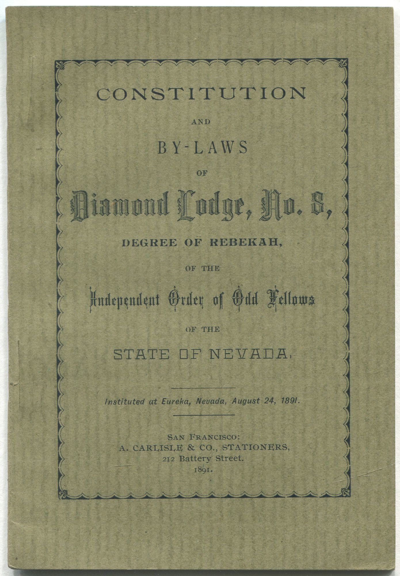 Constitution and By-Laws of Diamond Lodge, No. 8, Degree of Rebekah, of the Independent Order of Odd Fellows of the State of Nevada, Instituted at Eureka, Nevada, August 24, 1891