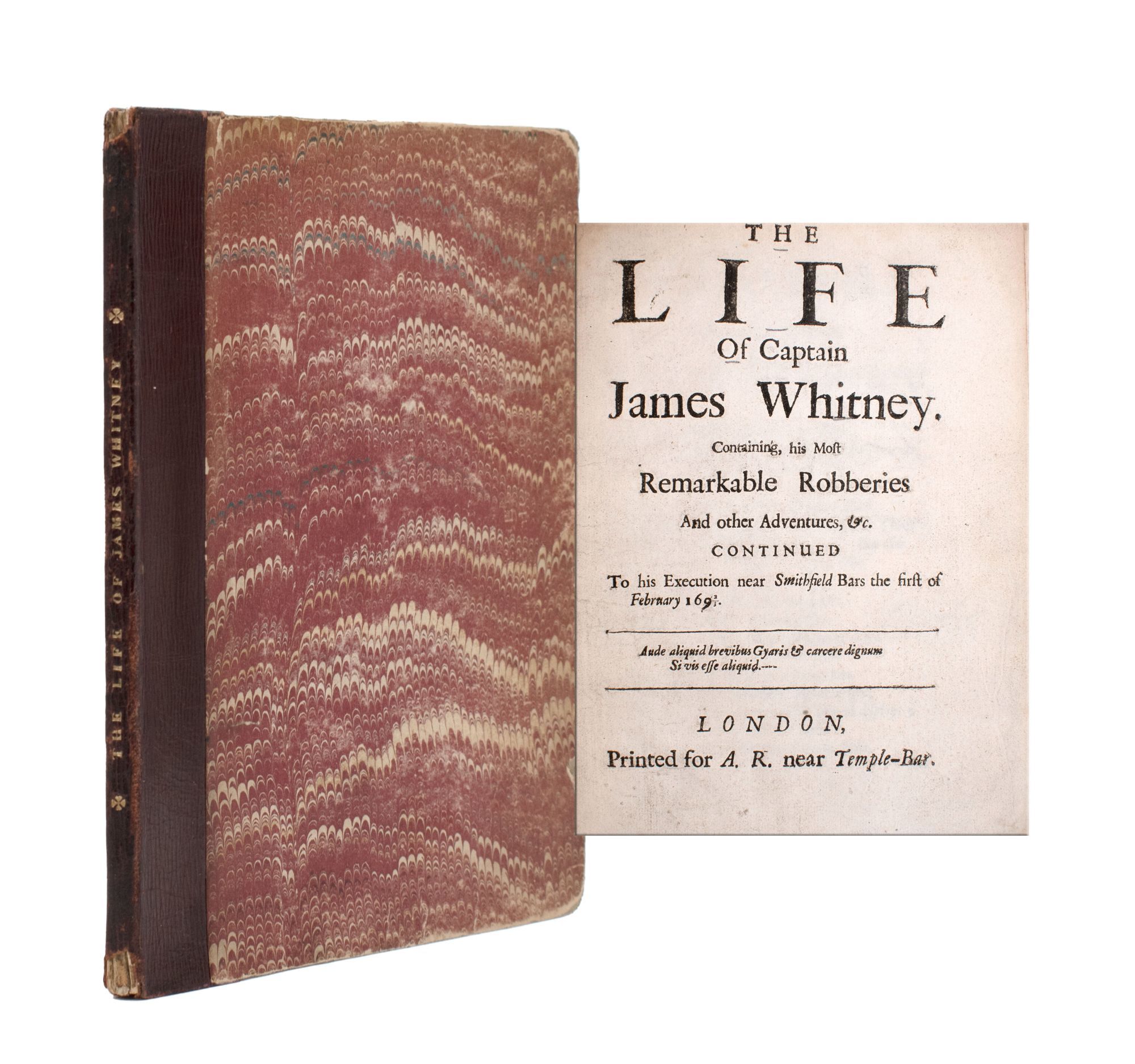 The Life of Captain James Whitney. Containing, his Most Remarkable Robberies and other Adventures … To His Execution Near Smithfield Bars, … the First of February 1692/3