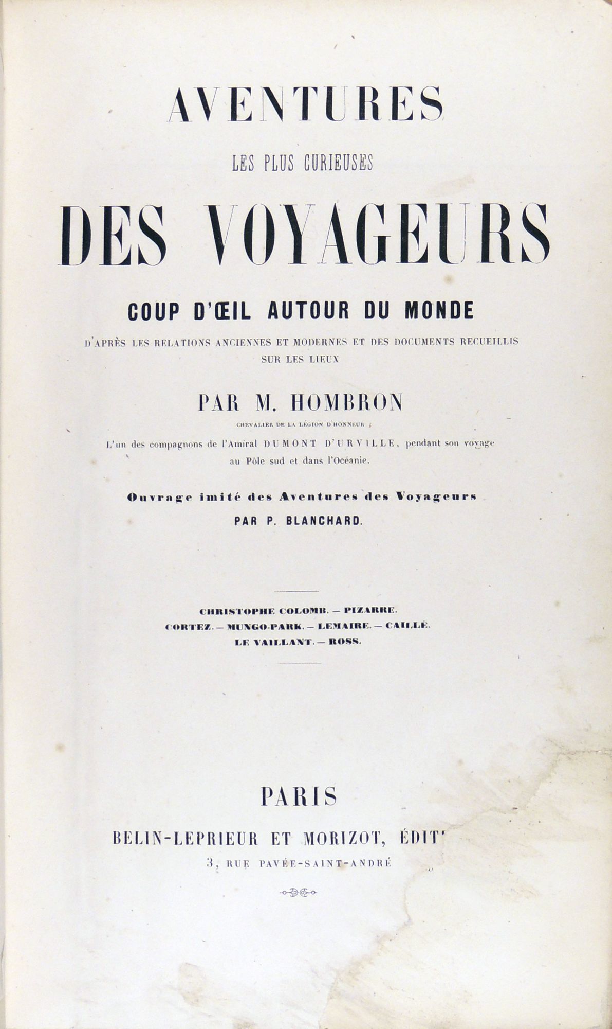 Aventures les Plus Curieuses des Voyageurs coup d'oeil authour du monde d'aprés les relations anciennes et modernes et des documents recueillis sur les lieux. 2 Tomes