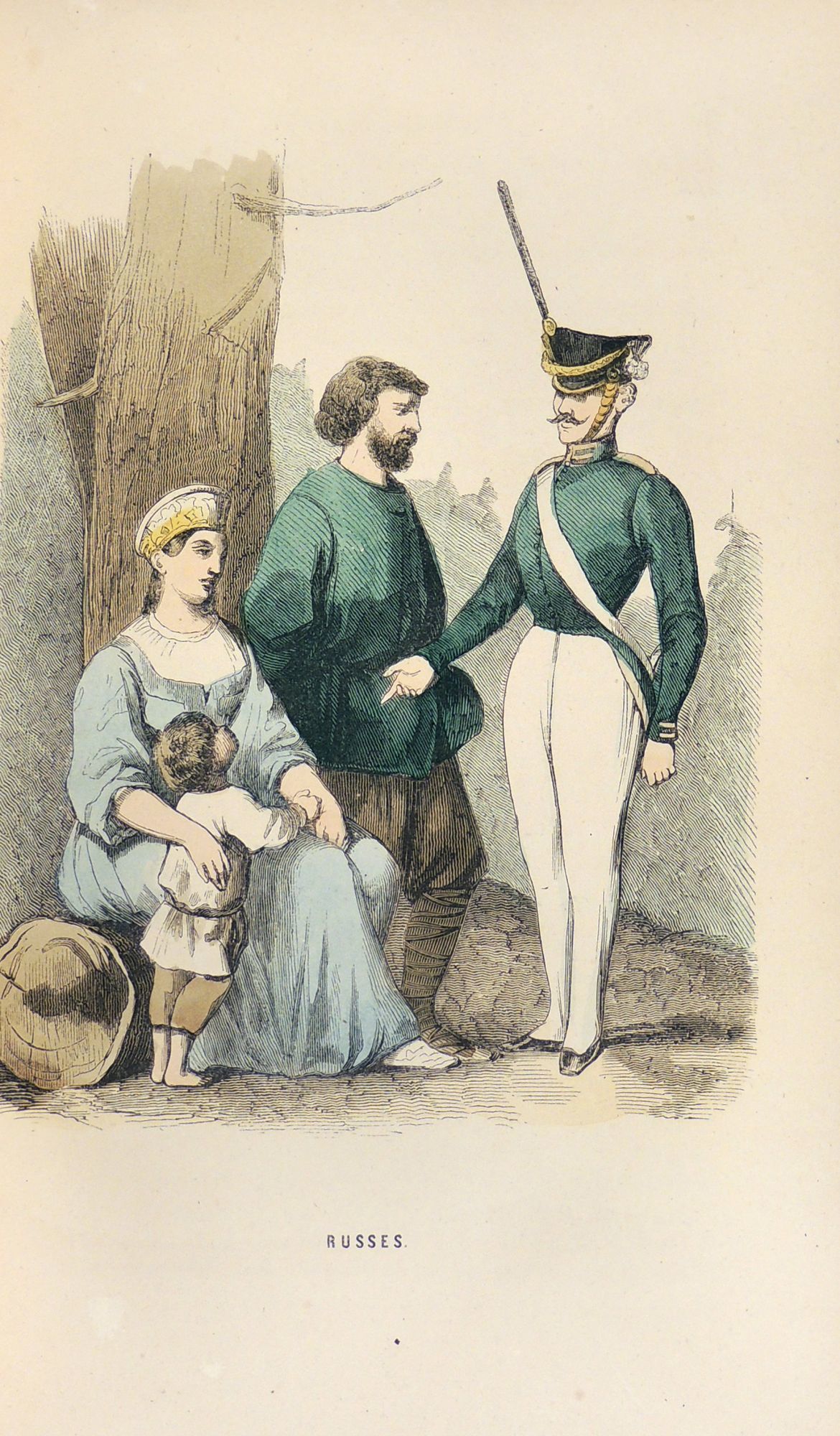 Paris: Belin-Leprieur et morizot. Hardcover. Very Good. Hardcover. no date. Circa 1870. Ex-library with evidence of stickers removed from spines and stamps partially removed from pastedowns. Red leather spines over red cloth covered boards with gilt titles and gilt decorations to spines. Heavy wear to corners of boards and to spine ends. Darkening to spines. Wear to hinges and to edges of boards. Occasional spots of foxing to interior, but clean overall. Chipping and a few closed tears to edges of some pages. The title pages in both volumes have torn corners, which have been repaired with paper from the same period. Filled with full page plates, several hand-colored. White silk moire endpapers and full gilt edges. 74Volume I: 494 pages; Volume II: 474 pages. FRE/112122.