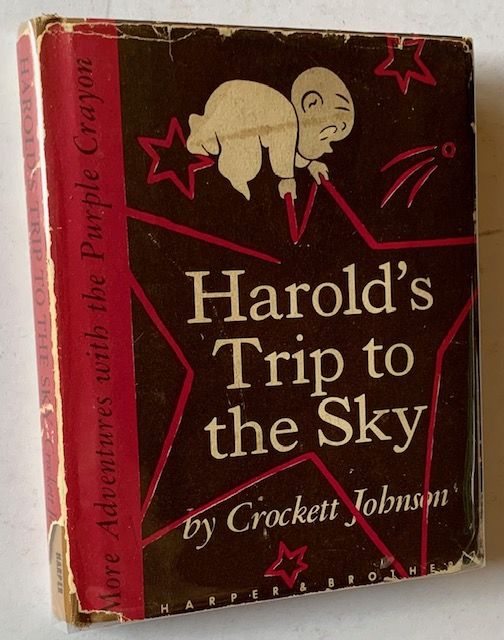 New York: Harper & Brothers, 1957. Pictorial boards. Very Good +/Good +. Crockett Johnson. A perfectly serviceable copy of the 1957 1st edition of this, the 3rd title in Crockett Johnson's wonderful "Harold and the Purple Crayon" series. Solid and VG+ (small, very neat inscription at the front free endpaper) in a bright, price-clipped, Good+ only dustjacket, with notable creasing and chipping and several small closed tears along the panel edges, and pronounced soiling to the rear panel. Still though, not an umattractive copy, even a solid "starter" copy.