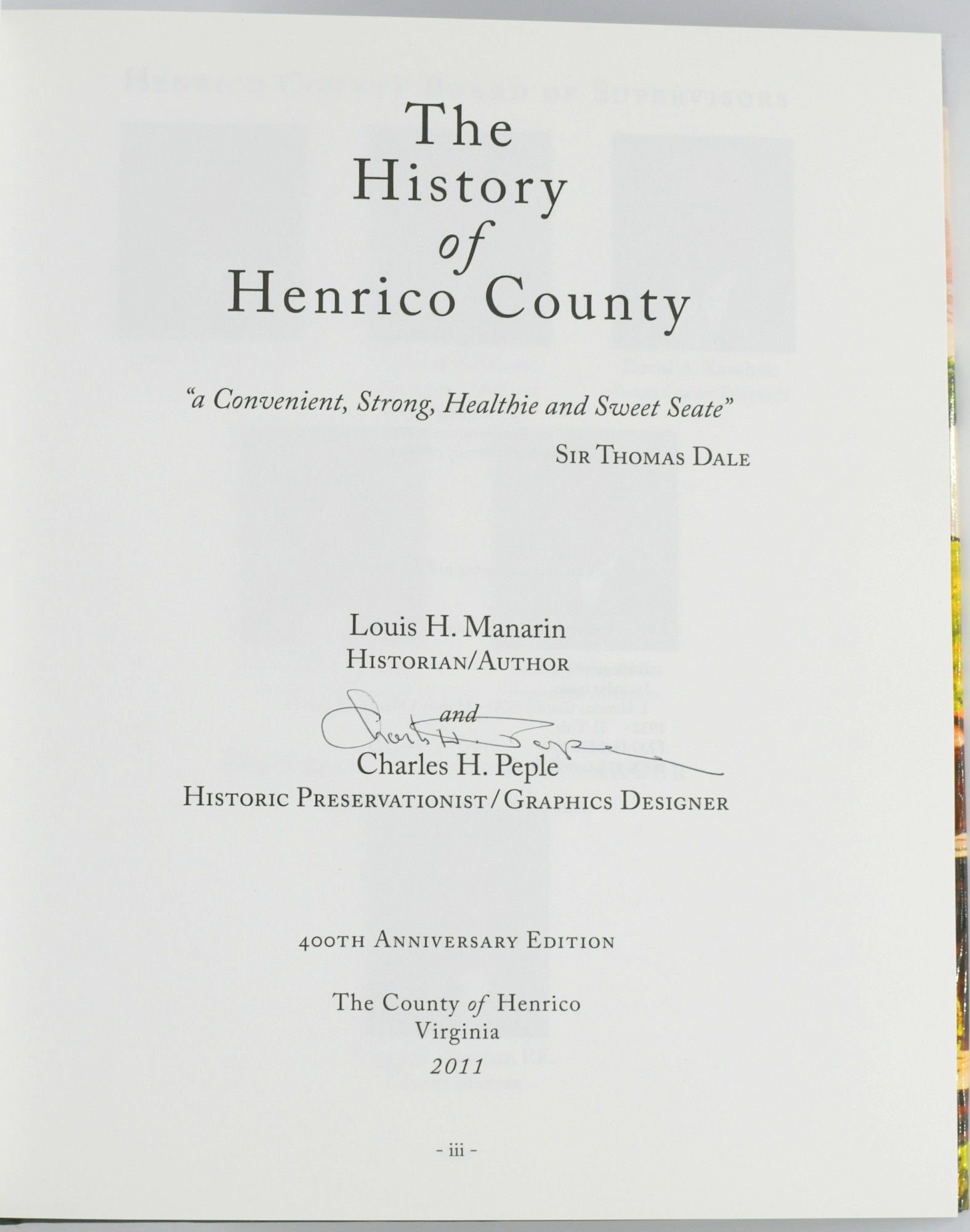 [VIRGINIA] [HENRICO] THE HISTORY OF HENRICO COUNTY. 400th ANNIVERSARY EDITION
