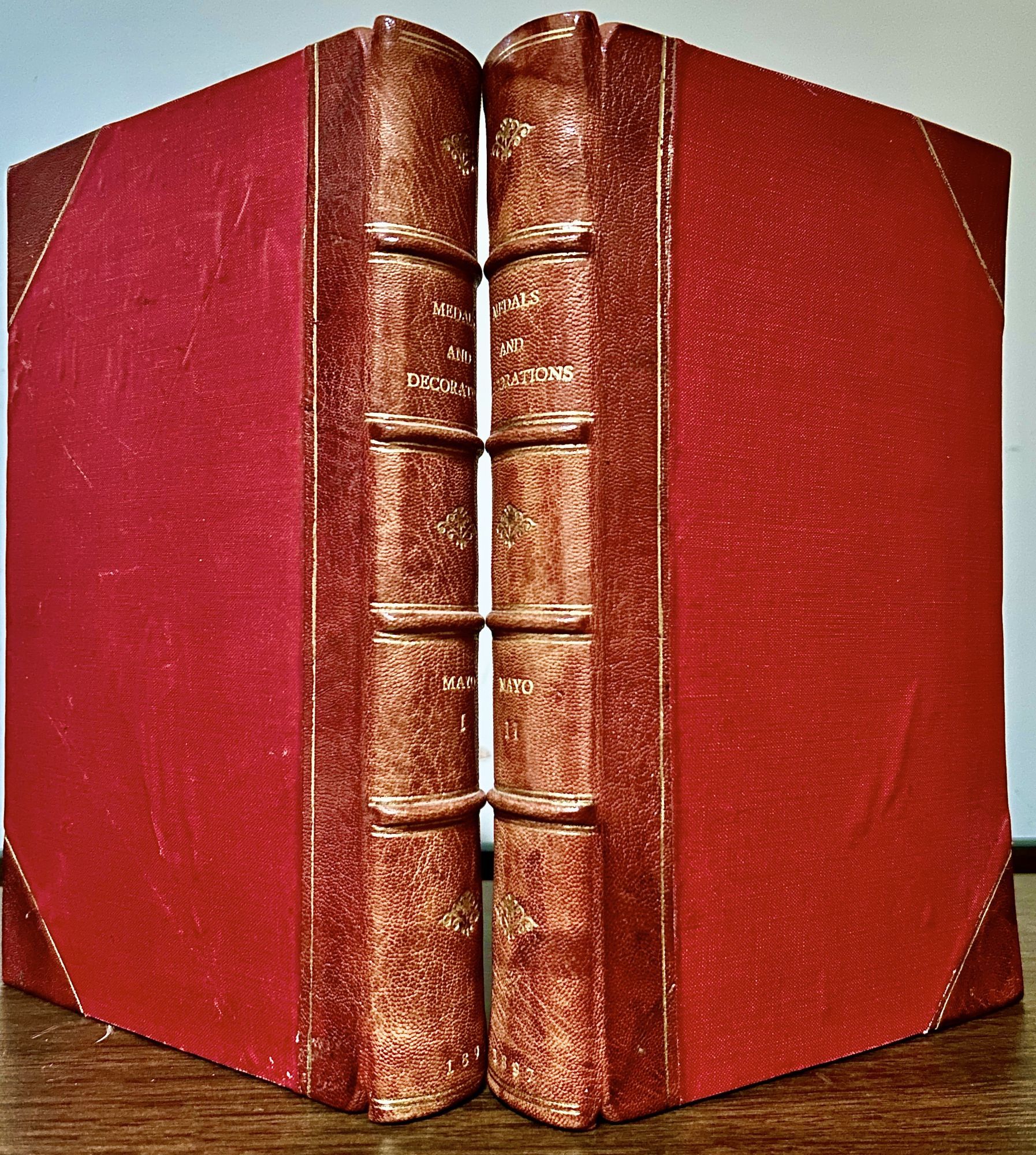 London: Archibald Constable And Co, 1897. First edition. Hardcover. Three quarter brown morocco and red cloth. Teg. Near fine. 2 Vols. 617 pages. 25.5 x 16.5 cm. Color frontispiece and 35 color and chromolithograph plates, all printed in gold and silver, plus an additional eighteen other plates of medals, one plate of memorial brass. Appendix and Index. Decorated endpapers, raised bands, spine panels lettered and decorated in gilt. Slight bubbling to cloth, interior contents fresh and crisp.