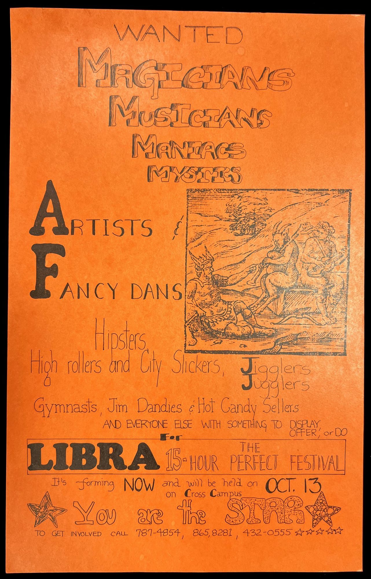 Full spreadsheet listing of items available on request. As expected for the early 1970s in a university setting subject matter includes Social Movements (Anti-war, Women, Viet Nam), Activism, Religion, Drama, Music, Poetry and more.