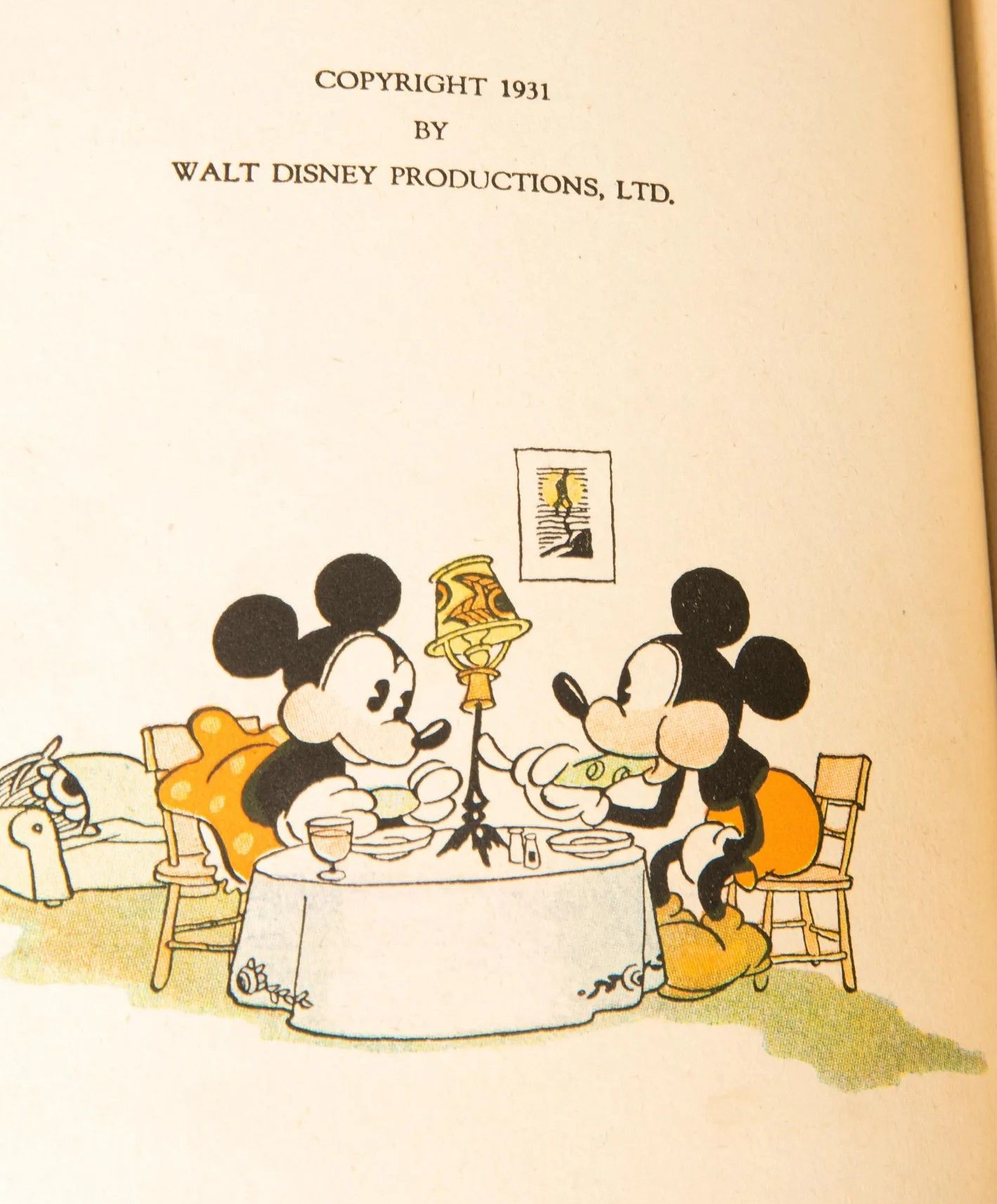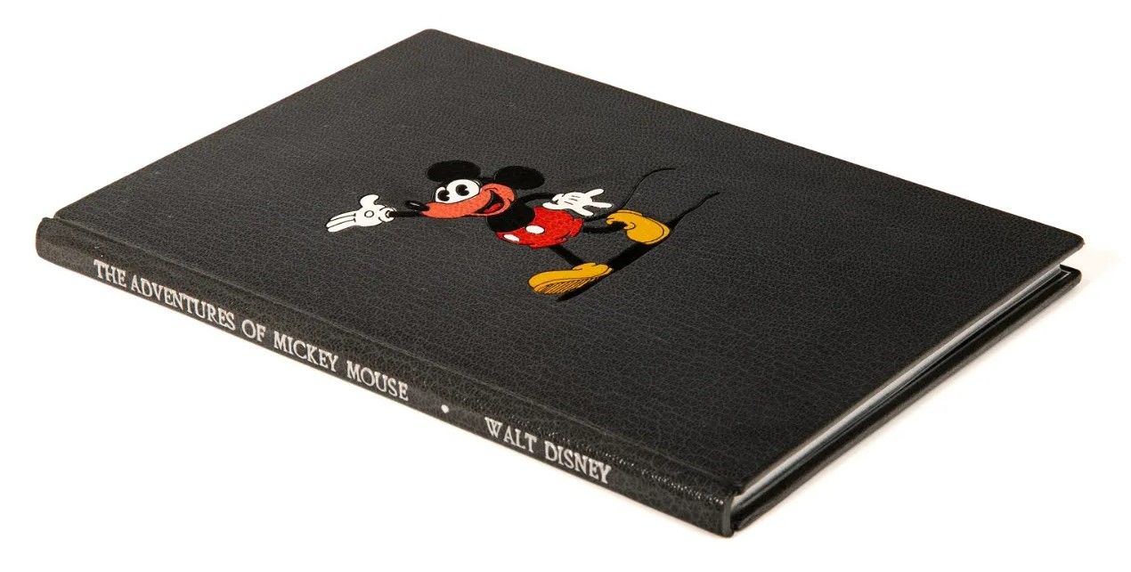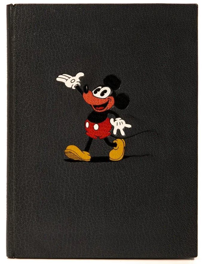Philadelphia: David McKay Company, (1931). First Edition. Hardcover. Minor soiling to a few pages; margins trimmed in rebinding. Fine in a sweet binding. Beautifully bound by The Chelsea Bindery in full black morocco leather with multi-color morocco design depicting Mickey Mouse on the front cover, silver lettering on the spine, all edges silver gilt, new end-papers depicting Mickey Mouse, Minnie Mouse, Donald Duck, and Pluto (5-3/4" x 7-1/2"). The First Disney book and the first appearance of Donald Duck, though not as we would come to know him. Illustrated throughout in color by the Walt Disney studio.