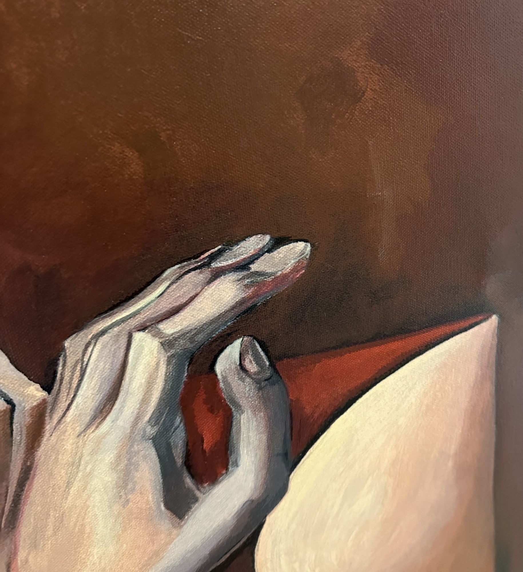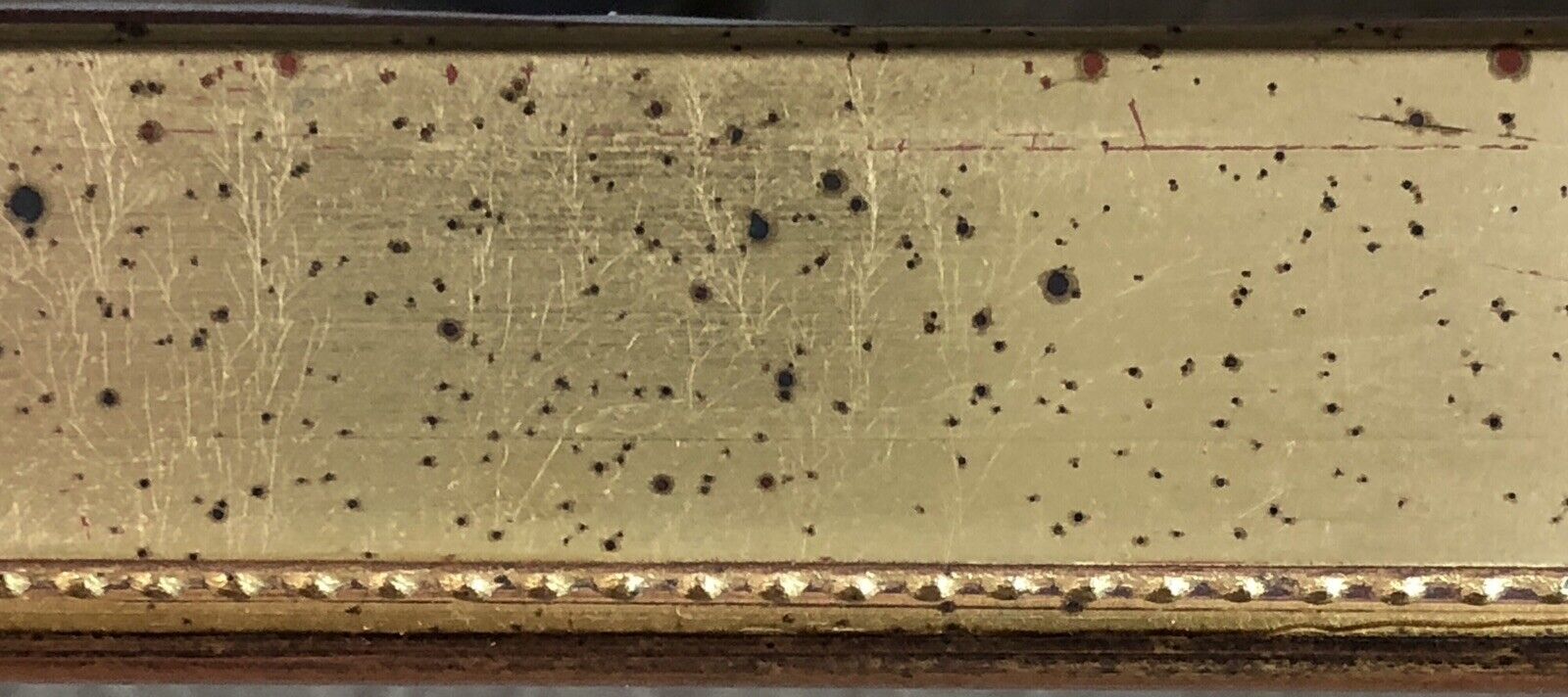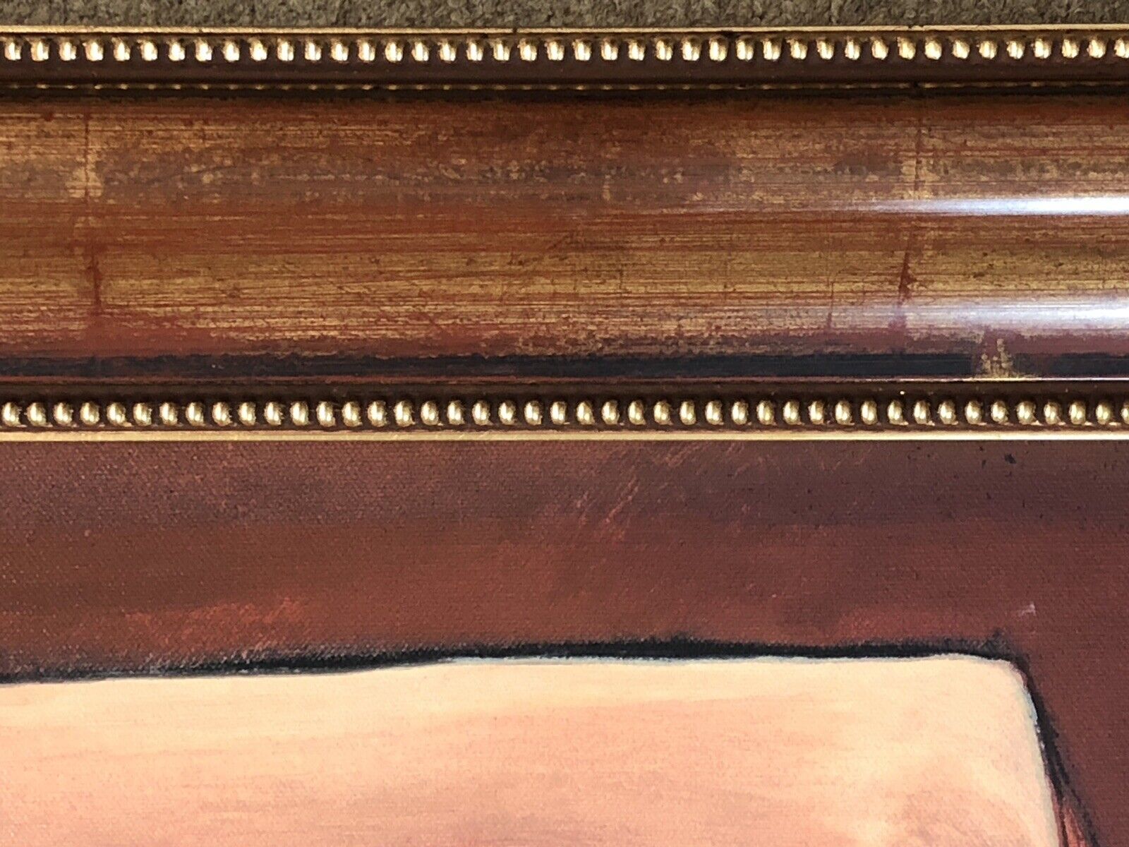 1998. Limited Edition No.69/150. Printed on canvas and numbered 69/150 in upper left corner. Canvas housed in wood frame measuring 39" x 49 5/8" (the print measures 30" x 40"). Serigraph is in very good condition with canvas slightly pushed out above man's shoulder in upper right of painting (one bump measures 2 1/4" x 1/2", the other 1 1/4" x 3/4").. Frame has a few small scrapes and chips along the edges, and the gold-colored paint is wearing away along the frame face and edges. ES Consignment. Shelved in Rockville.