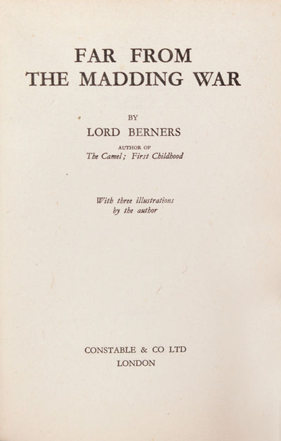 London: Constable, 1941. First edition. 192, [1], [1, blank], [2, ads] pp. 1 vols. 8vo. Red cloth. Some toning. Very good in very good dust jacket (price clipped). Inscribed by the author on the front flyleaf. First edition. 192, [1], [1, blank], [2, ads] pp. 1 vols. 8vo. Second novel by Berners, of English village life during the war, here inscribed: