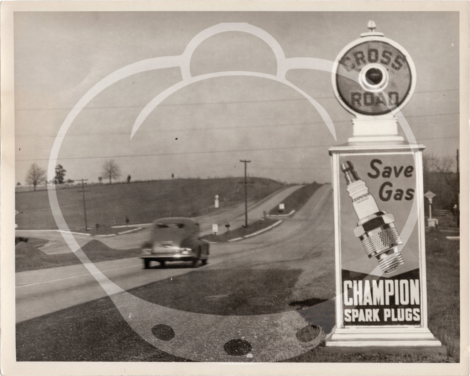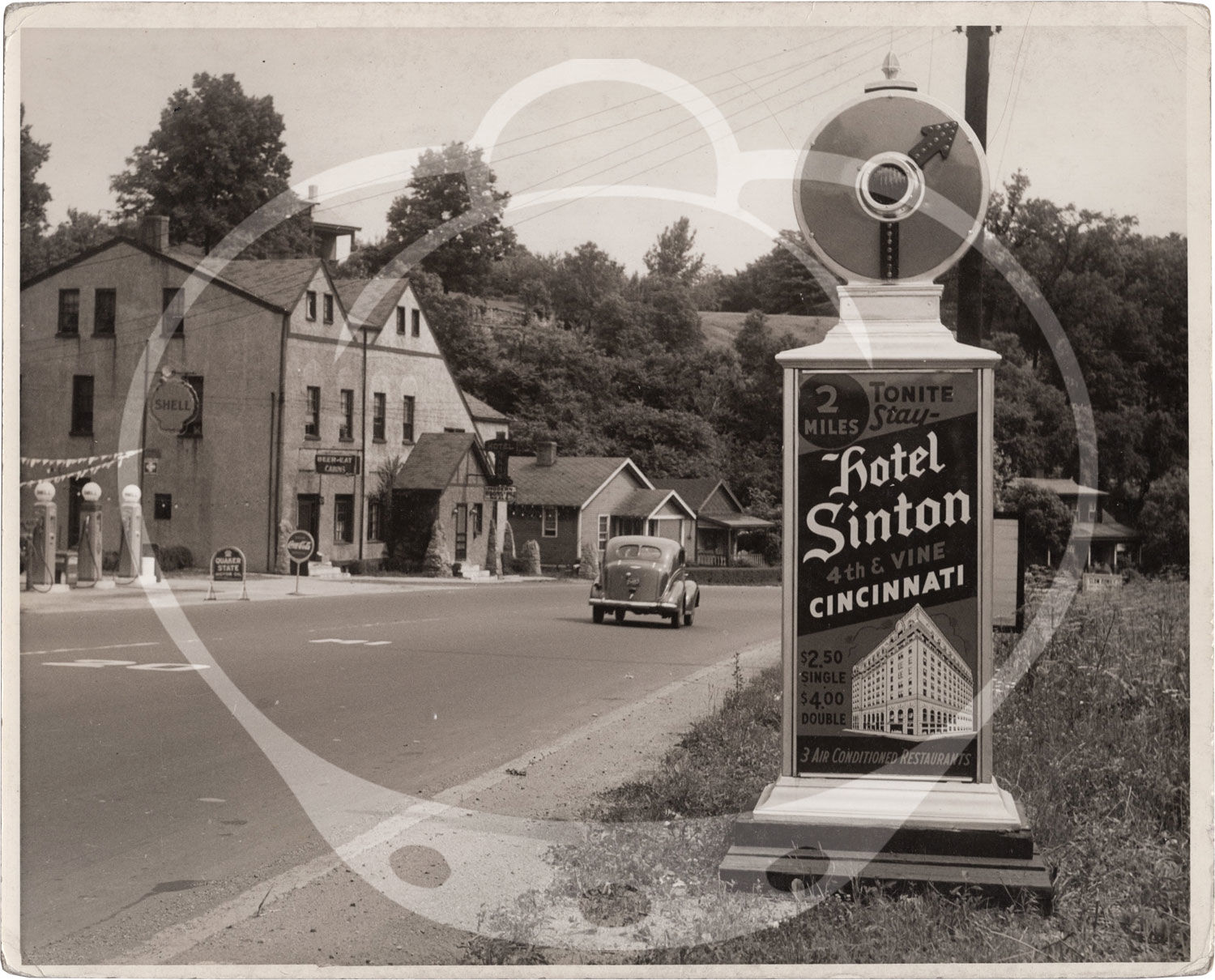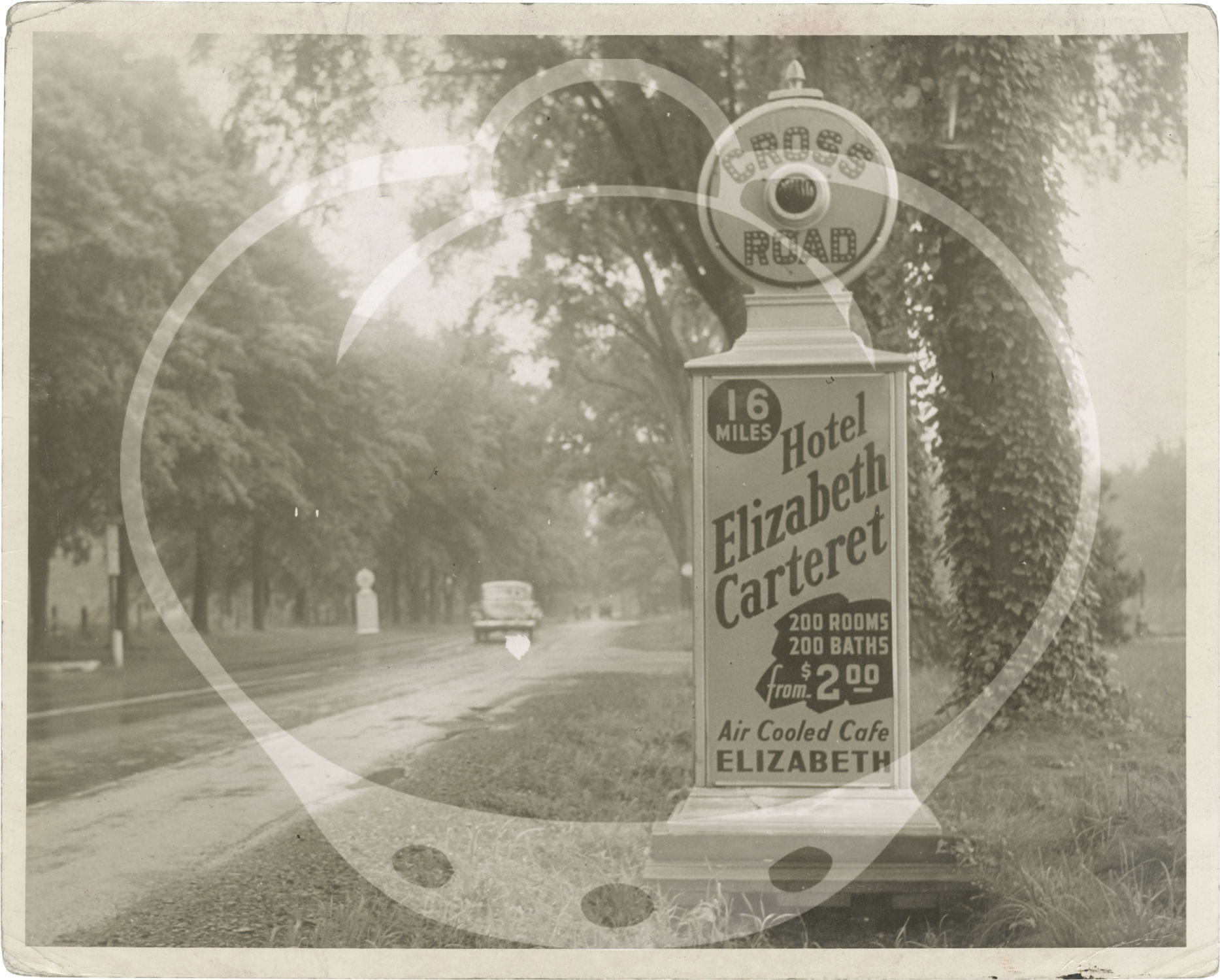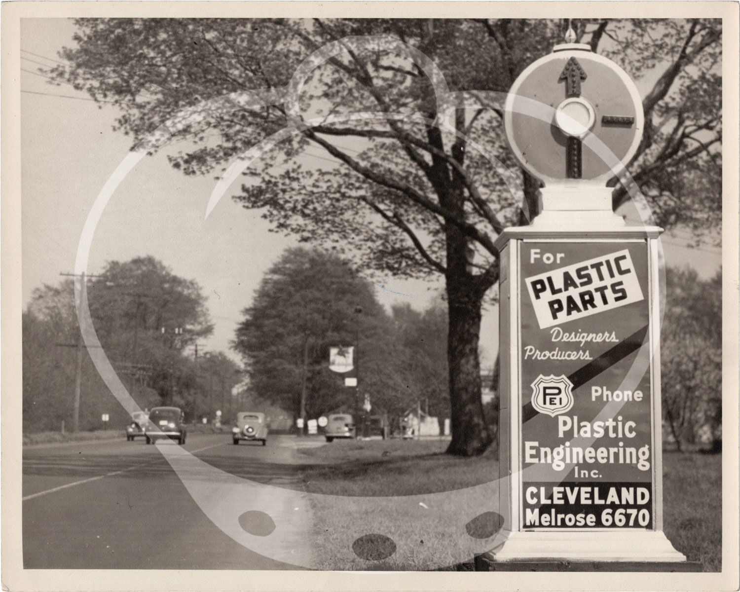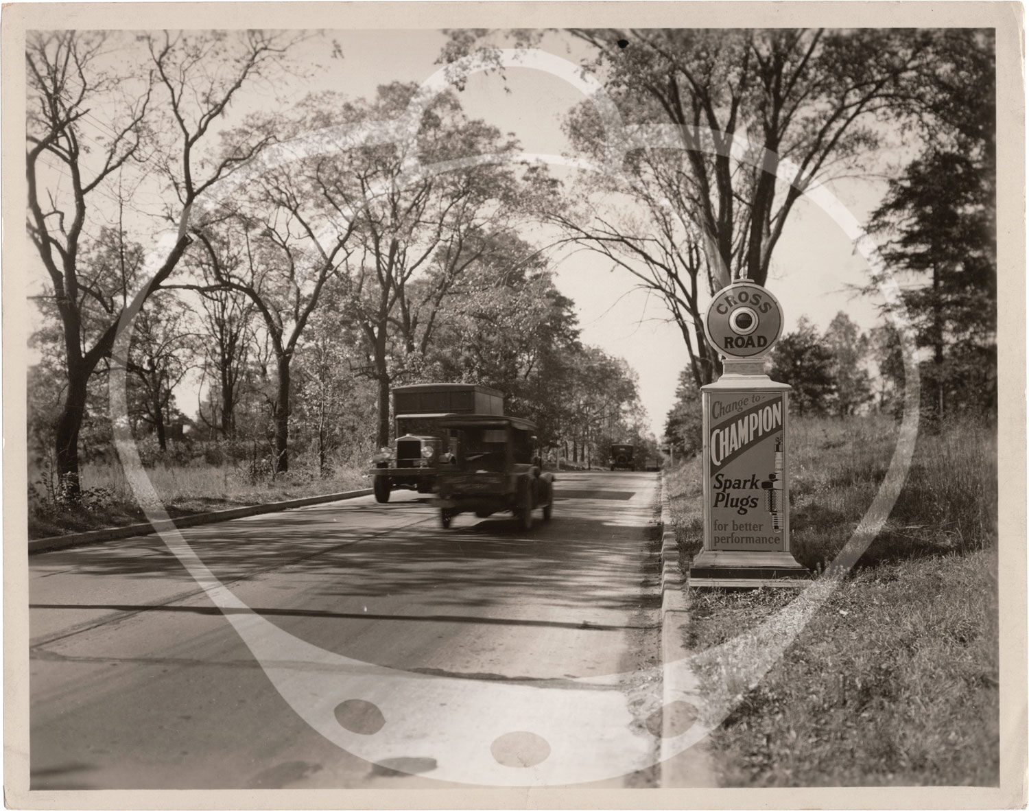 The collection contains thirteen photographs of alert signs advertising Champion spark plugs, seven advertising hotels (the Biltmore in Dayton, Hotel Sinton in Cincinnati, Hotel Adelphia in Philadelphia, Hotel Schenley in Pittsburgh, Hotel Webster Hall in Detroit, and two for Hotel Elizabeth Carteret in Elizabeth, New Jersey), three advertising radio stations (WJW and WADC of Akron and WSPD of Toledo), and three for various automobile and travel-related businesses.