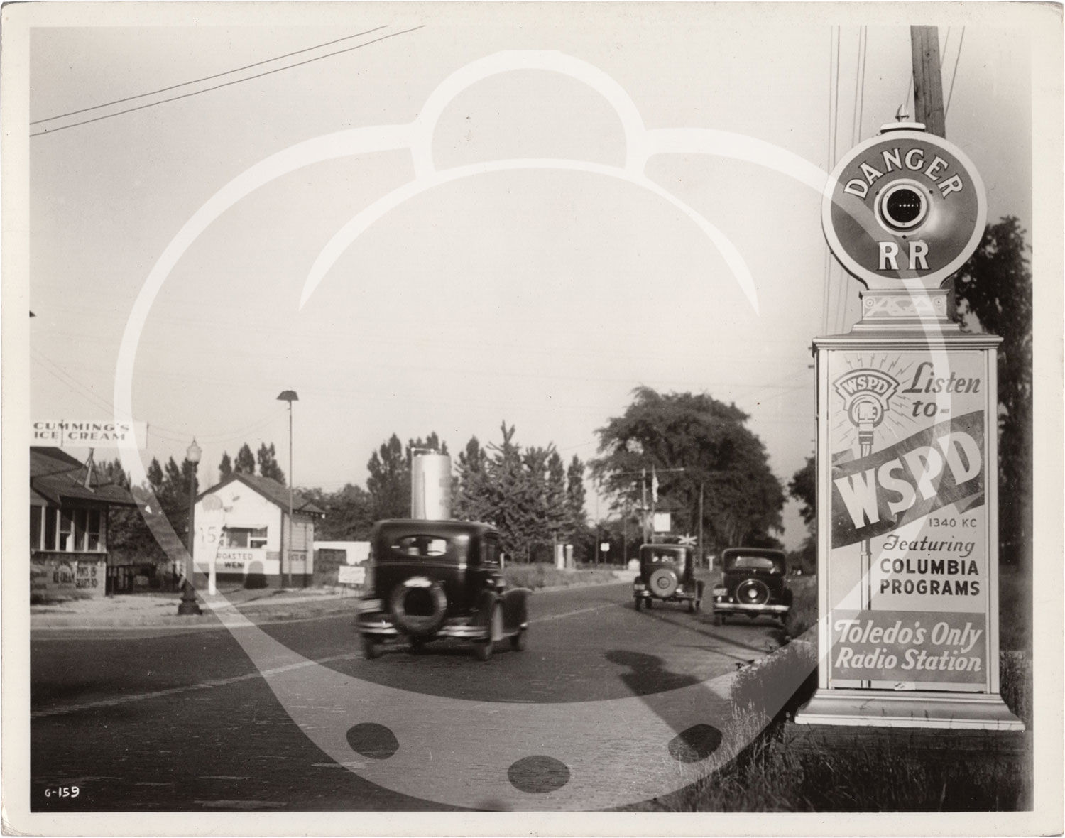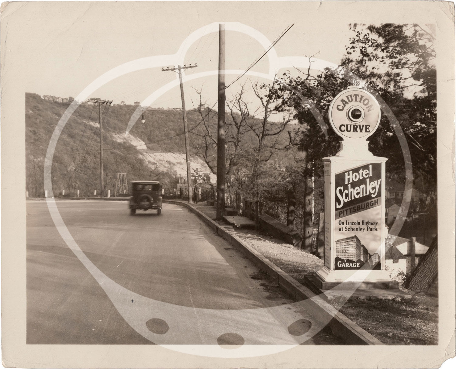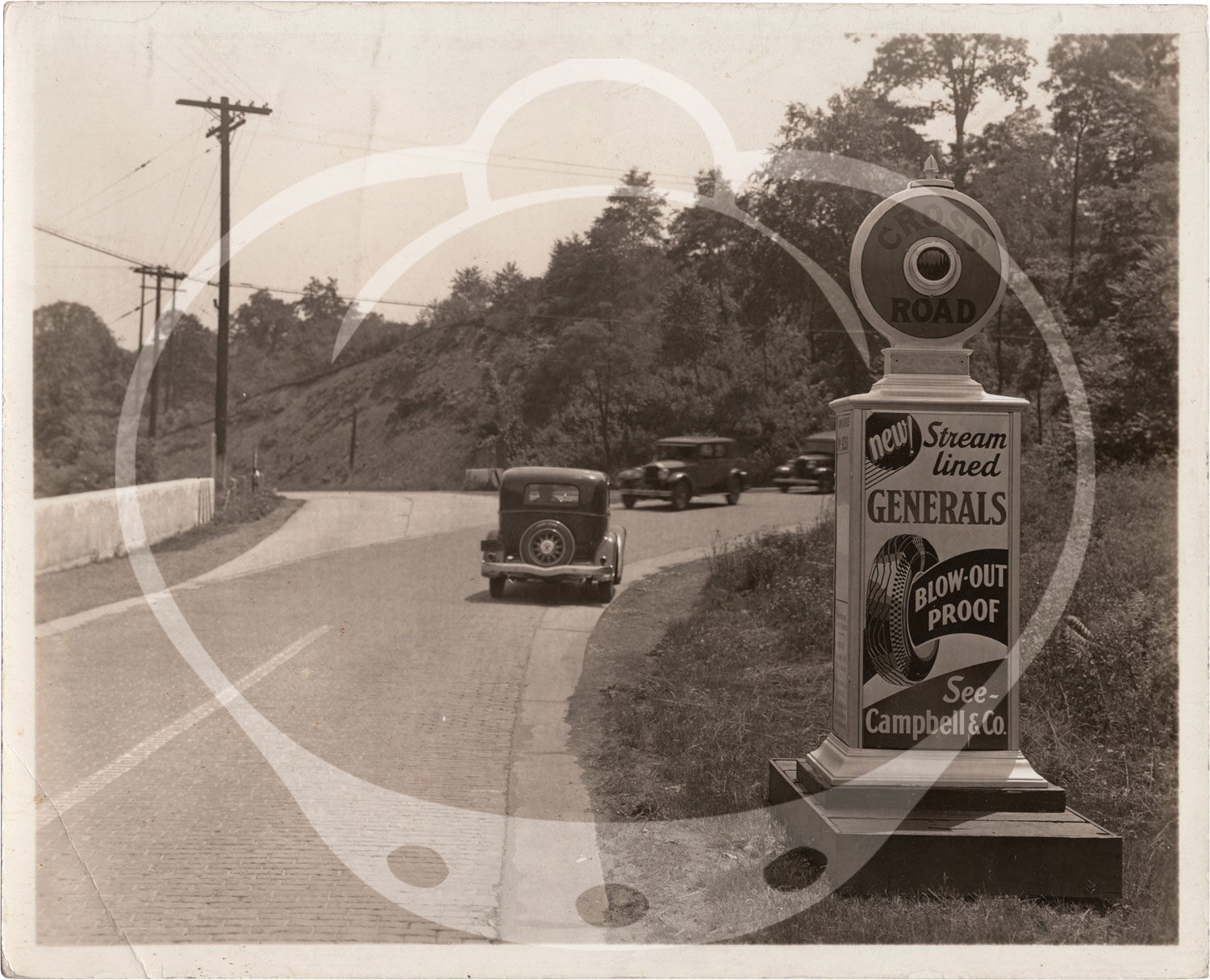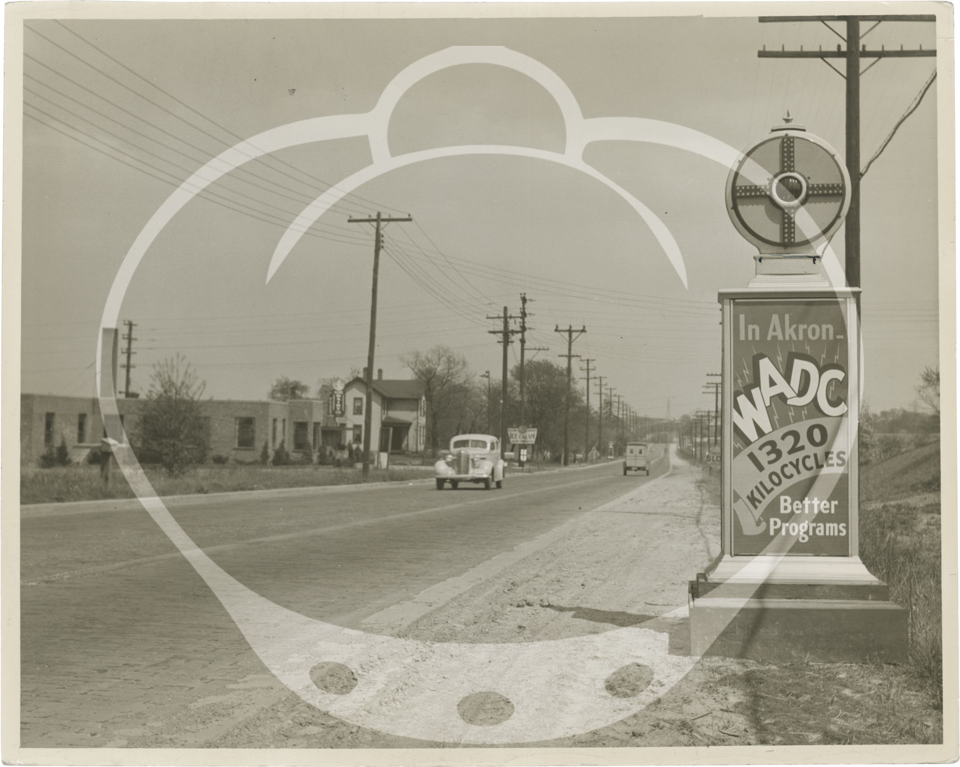 The collection contains thirteen photographs of alert signs advertising Champion spark plugs, seven advertising hotels (the Biltmore in Dayton, Hotel Sinton in Cincinnati, Hotel Adelphia in Philadelphia, Hotel Schenley in Pittsburgh, Hotel Webster Hall in Detroit, and two for Hotel Elizabeth Carteret in Elizabeth, New Jersey), three advertising radio stations (WJW and WADC of Akron and WSPD of Toledo), and three for various automobile and travel-related businesses.