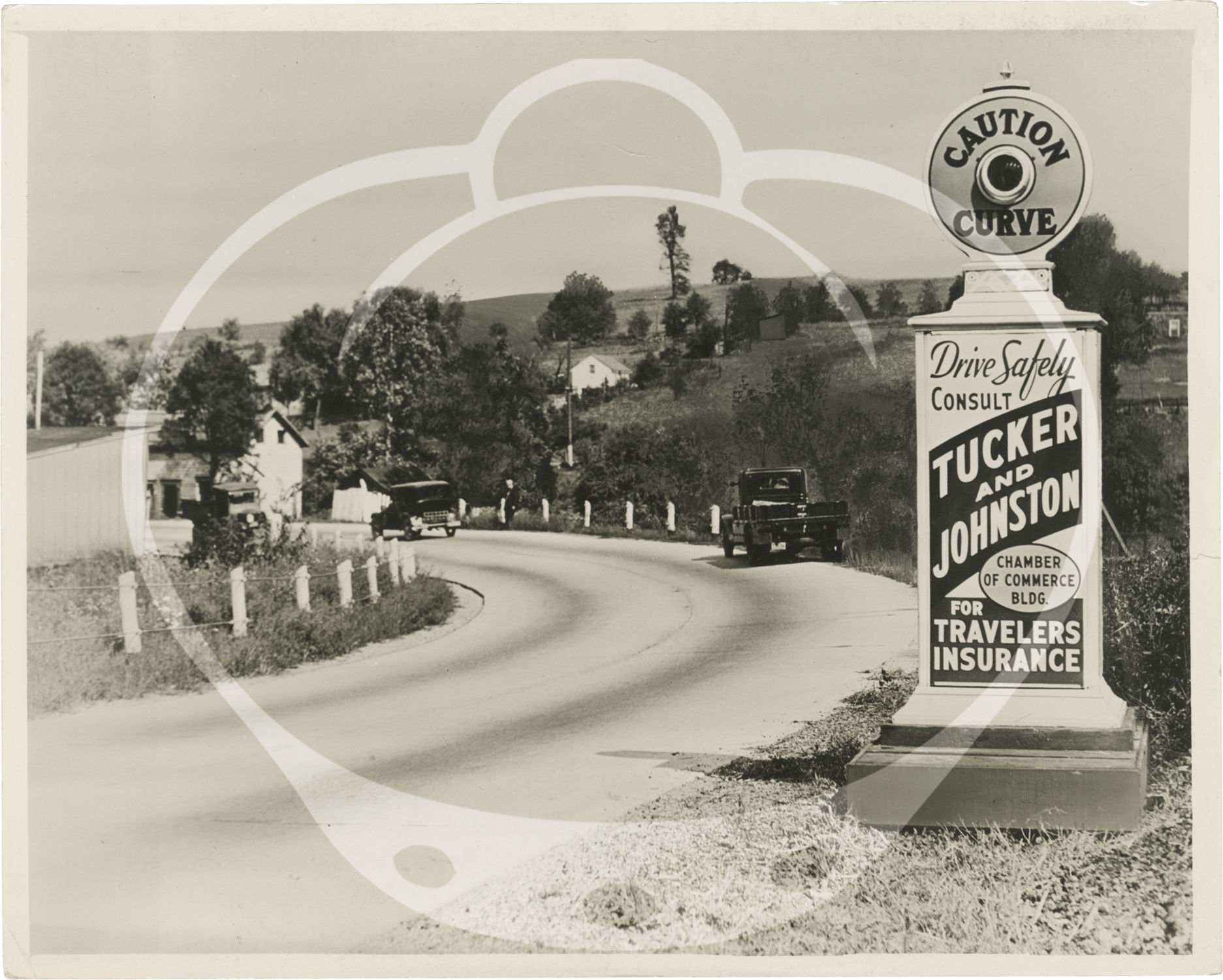 N.p.: N.p., 1940. Archive of 26 vintage photographs of mid-Atlantic roadside alert signs with advertisements, circa 1930s-1940s. Includes 21 double weight photographs and two matte-finish. Three photographs bear annotations in manuscript pencil on the verso.