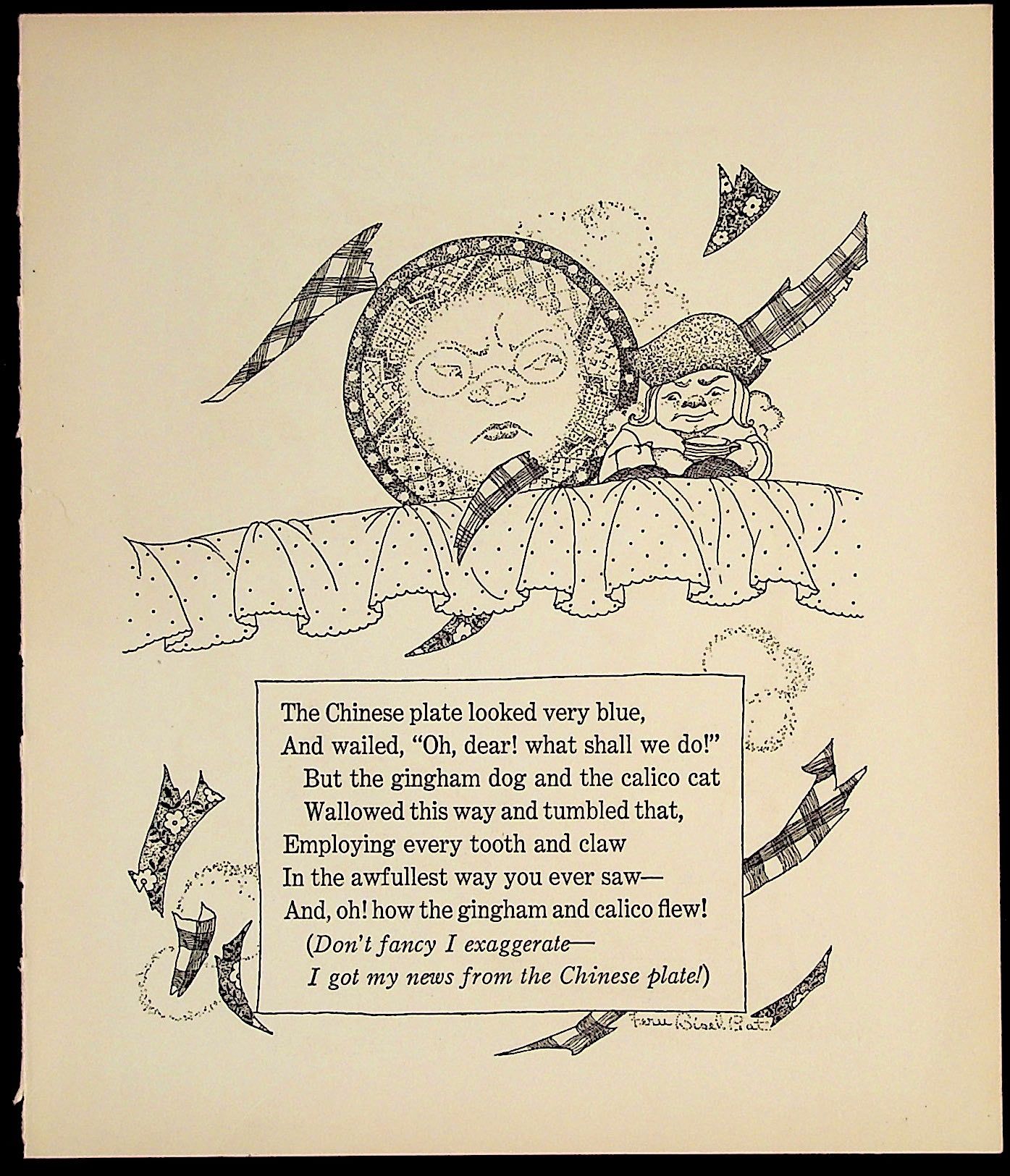 Full color illustration. Includes an additional page with a verse beginning "The Chinese plate looked very blue, and wailed 'Oh, dear! What shall we do!' " Suitable for framing. Size: about 11.5 x 10 inches. Print/120922.