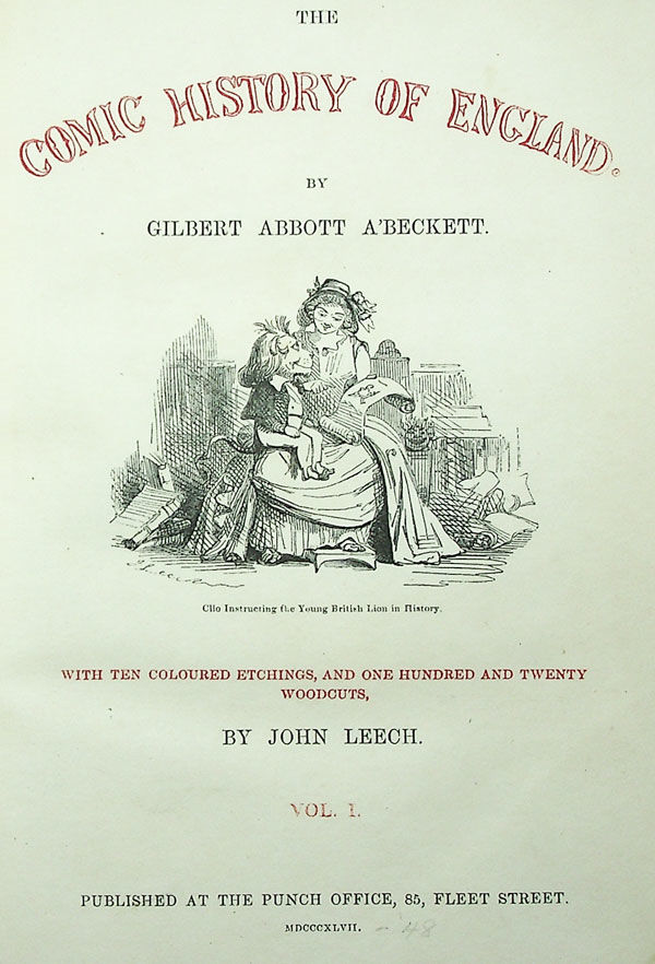 London: Punch Office, 1847-48. First Edition. Octavo (22cm). Full tan calf, tooled in gilt at board edges, spine, and turn-ins, all edges gilt; marbled endpapers; xii,320pp; xii,394pp; xii,308pp; 30 hand-colored etchings and numerous in-text wood engravings by John Leech. Straight volumes, with faint staining to bindings at lower spine and board corners, not affecting interiors; lower joints splitting; internally clean, generally Good or better. A few original wrappers for the History of England bound in.