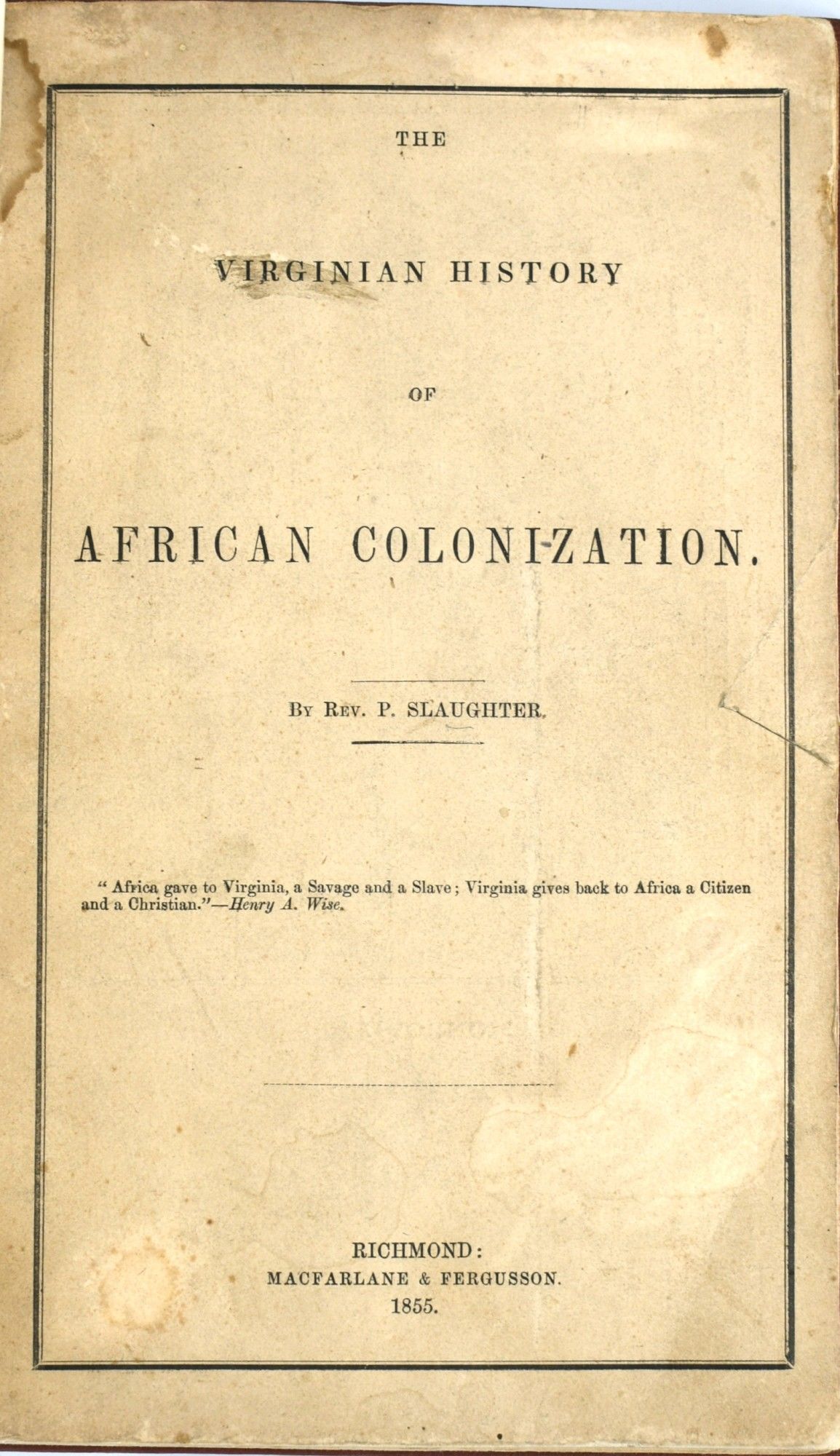 [SLAVERY] [COLONIZATION] THE VIRGINIAN HISTORY OF AFRICAN COLONIZATION