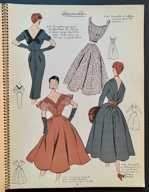 Paris: Publications Louchel, 1955. Spiral bound wraps. Near Fine. Lovely French lingerie catalogue, focusing on the winter 1955 season. Spiralbound, crisp off-white wrappers, with just a touch of very light soiling at the panels. Easily VG+ to Near Fine and, internally, clean as could be, with no writing or markings of any kind. Tall quarto, very appealing color and black-and-white illustrations throughout.