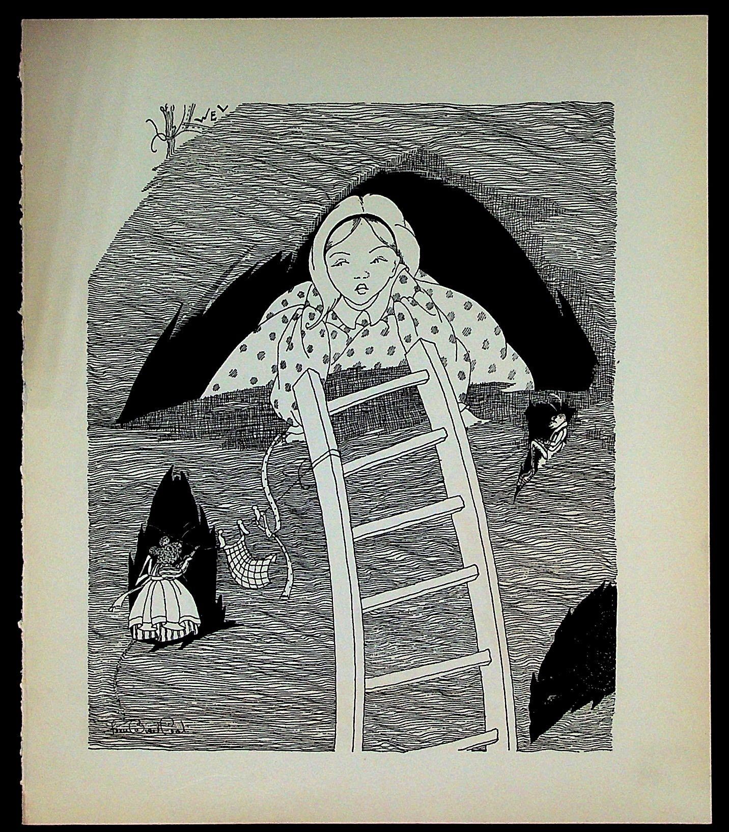 Black and white illustration.Suitable for framing. Size: about 11.5 x 10 inches. Print/121322.